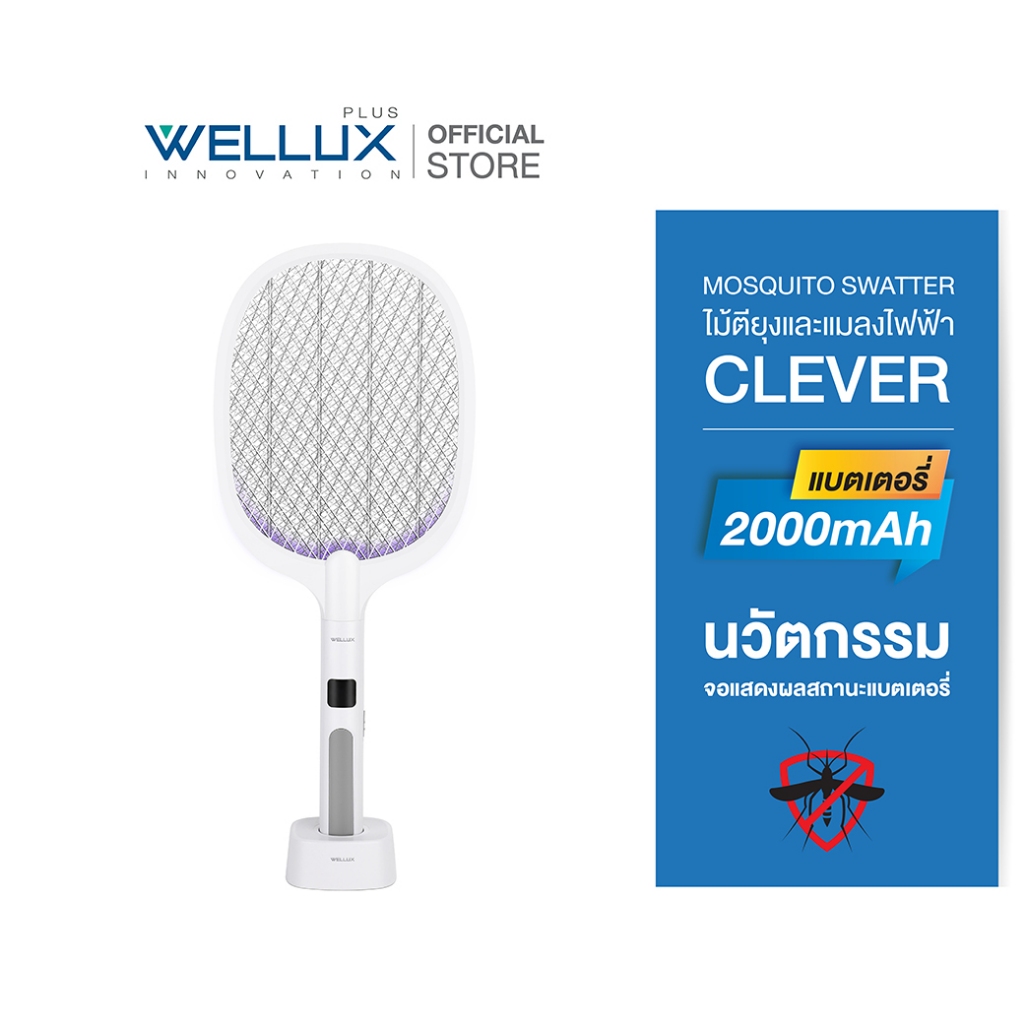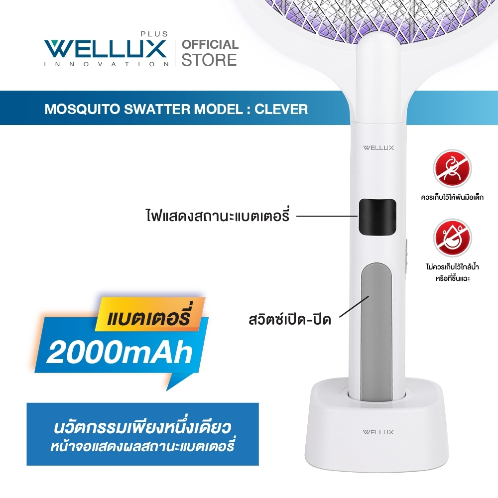 [รุ่นใหม่เพิ่มแบต]WELLUX ไม้ตียุงอัจฉริยะมาพร้อมจอ LED แสดงผลแบตเตอรี่ นวัตกรรมเพียงหนึ่งเดียว Mosquito Swatter CLEVER SERIES MODEL : WL-CLE999 *รับประกัน 15 วัน** การทำงานของเครื่อง OFF = ปิดการทำงาน ON1+กดปุ่มด้านหน้าสีเทาค้างไว้ = ระบบช๊อตยุงทำงาน ON2 = ระบบช๊อตยุงทำงาน+ไฟล่อยุง