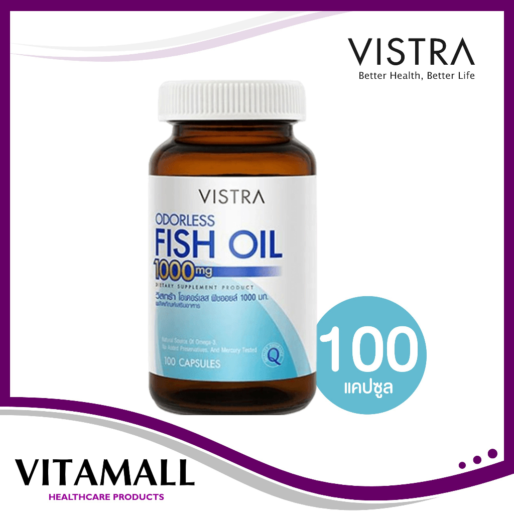 Vistra odorless fish oil 1000mg (100 แคปซูล) วิสทร้า โอเดอร์เลส ฟิชออยด์ นำ้มันปลา สูตรไม่มีกลิ่นคาว