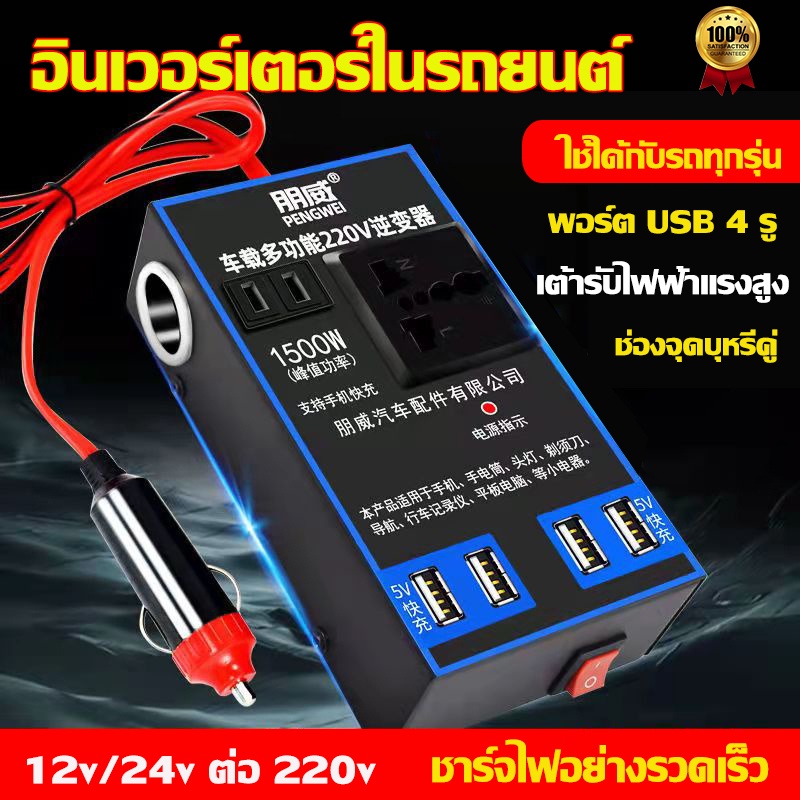 อินเวอร์เตอร์ 1500W อินเวอร์เตอร์ในรถยนต์12V/24V ออก 220V แปลงไฟรถยนต์ เป็นไฟบ้าน รถ อินเวอร์เตอร์พาวเวอร์ รถอินเวอร์เตอร์ อินเวอร์เตอร์แปลงไฟ อินเวอร์เตอร์พาวเวอร์รถยนต์ USB Charger Fast Charging ชาร์จเร็ว อินเวอร์เตอร์ไฟฟ้าแบบพกพา ​แปลงไฟ เหมาะสำหรับความหลากหลายของรุ่น: รถยนต์,รถบรรทุก,รถออฟโรด