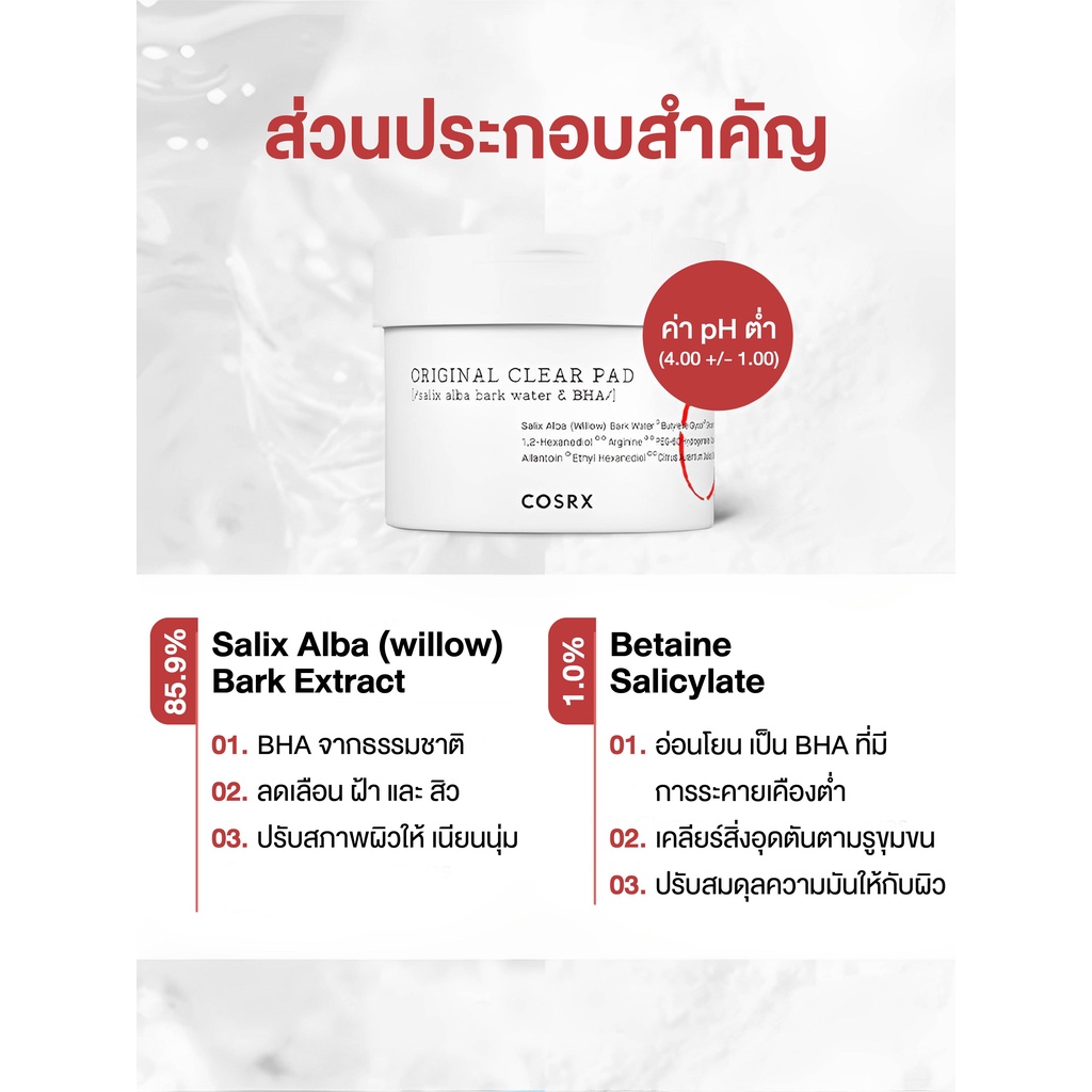 COSRX Original Clear Pad 70 pads คอสอาร์เอ็กซ์ ออริจินัล เคลียร์ แพด 70 แผ่น แผ่นโทนเนอร์ทำความสะอาดผิว ช่วยขจัดปัญหาสิว