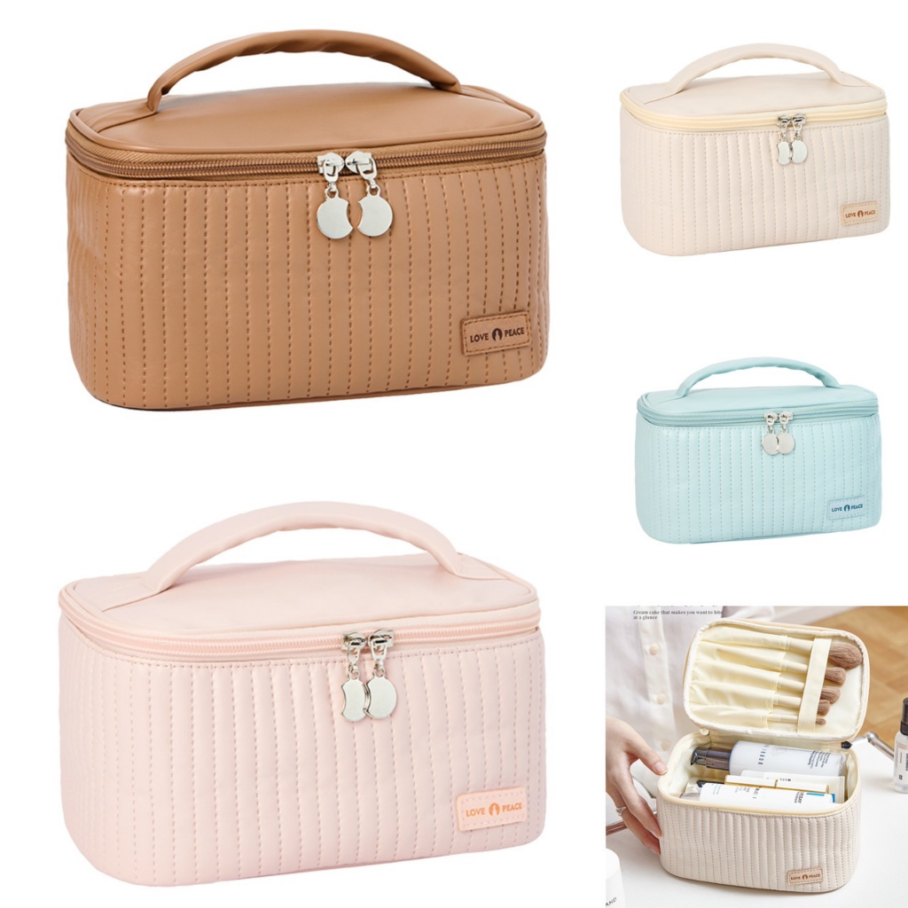 กระเป๋าใส่เครื่องสำอางค์ สีสวยหวานละมุนมากๆ มีที่จับด้านบน จุของได้เยอะ วัสดุ : PU ขนาด : 12*13.5*21 cm. มี 4 สี : สีครีม สีชมพู สีฟ้า สีกาแฟ