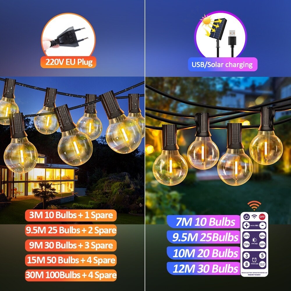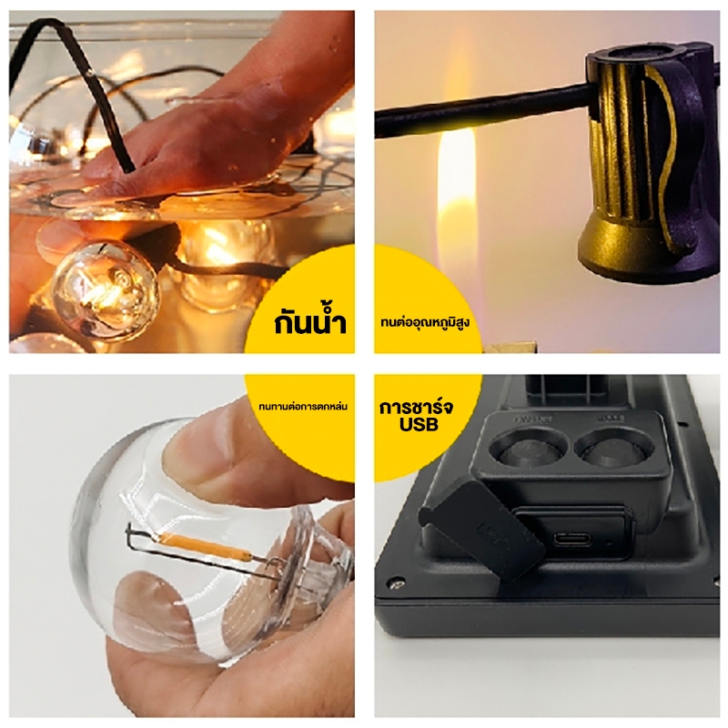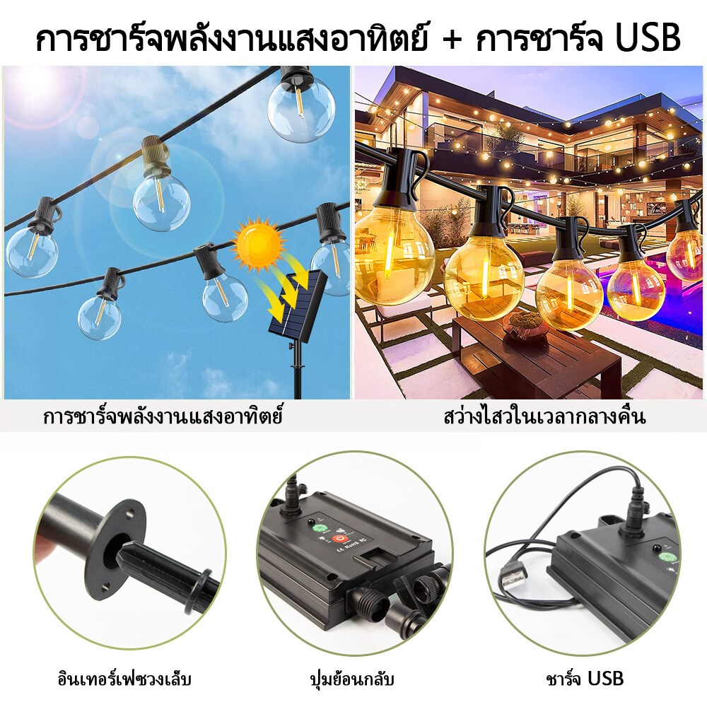 【จัดส่งฟรี】ไฟตกแต่ง ไฟประดับ ไฟปิงปอง ไฟโซล่าเซลล์ ไฟกลางแจ้งกันน้ำ กันน้ำได้ ประดับสวน 50 LED