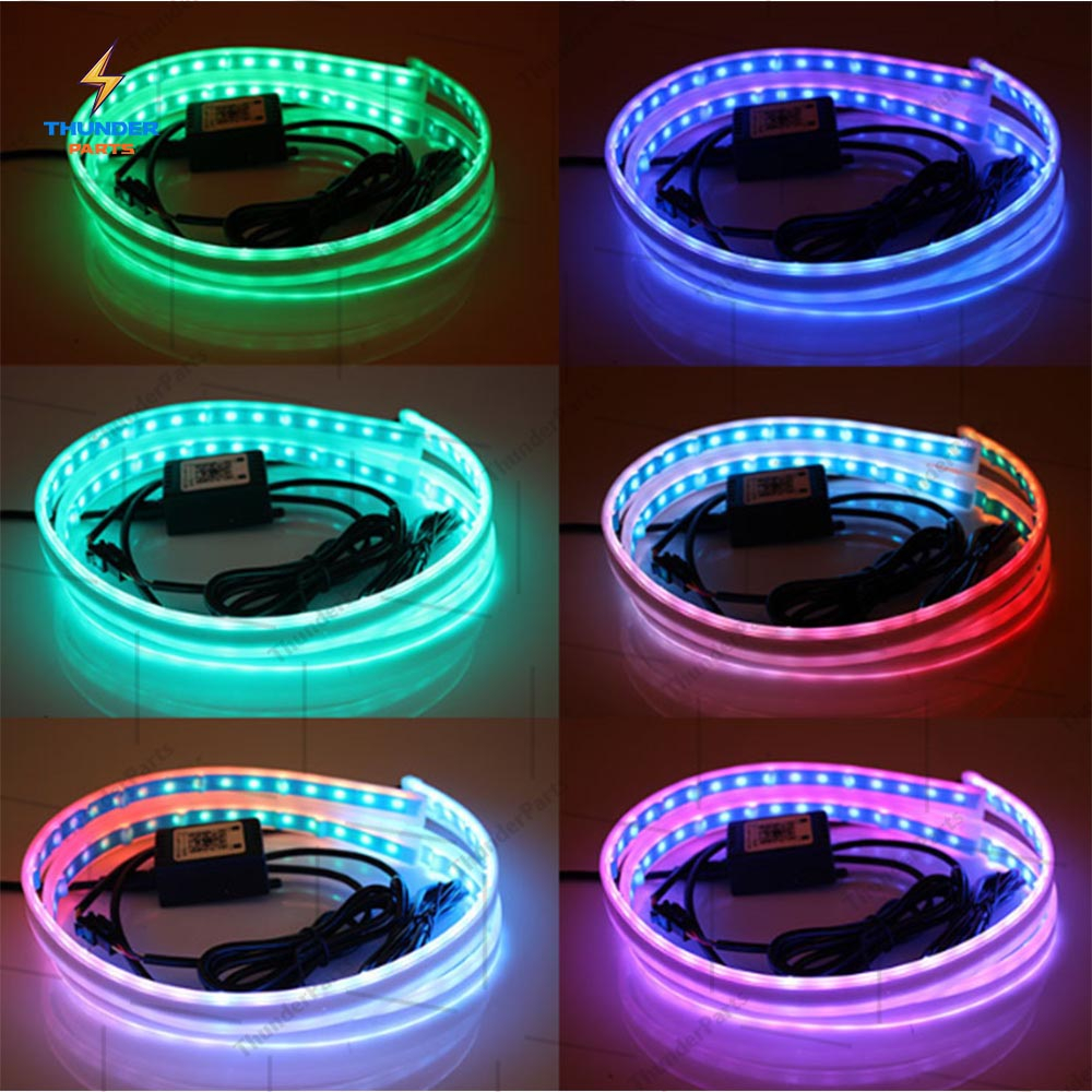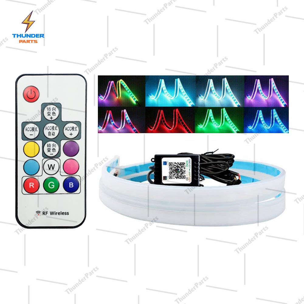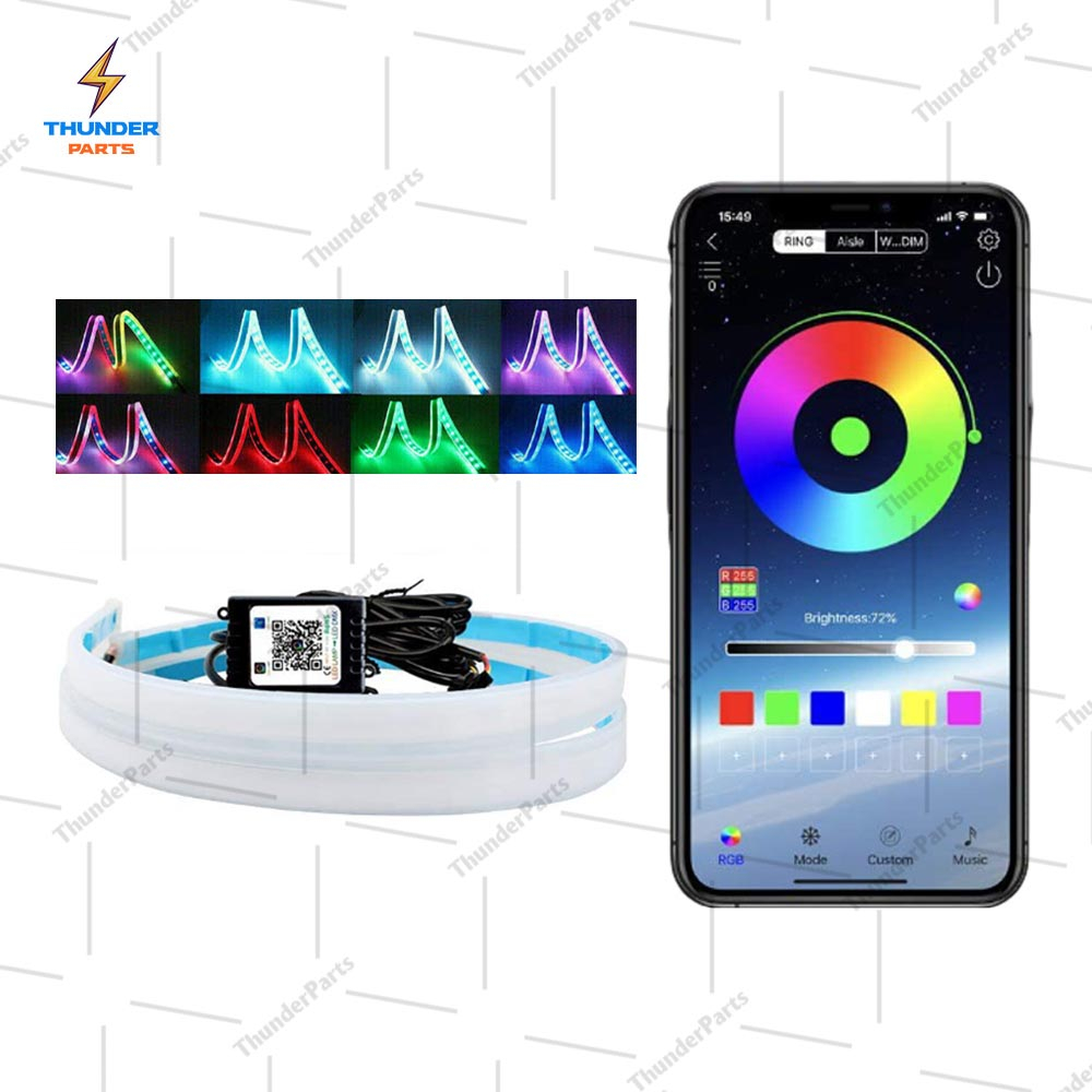 ชุด 2ชิ้น LED 12V ไฟเดย์ไลท์ แบบแอพพลิเคชั่น และ แบบรีโมท ไฟเลี้ยววิ่ง Daylight (DRL) สีRGB รถยนต์ รถรุ่นทั่วไป (Candy)