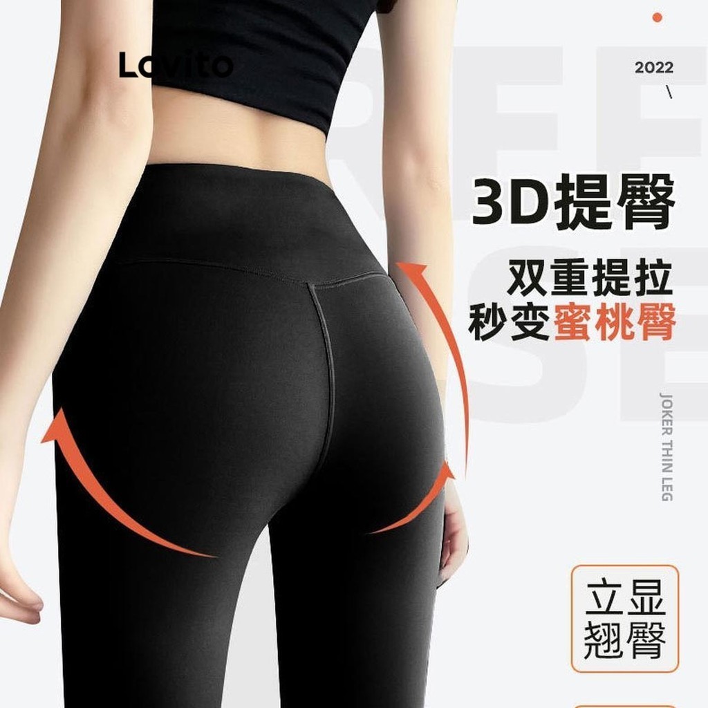 Lovito เลกกิ้งผู้หญิง สีพื้น แต่งผ้าตาข่าย สไตล์สปอร์ต LNE59082