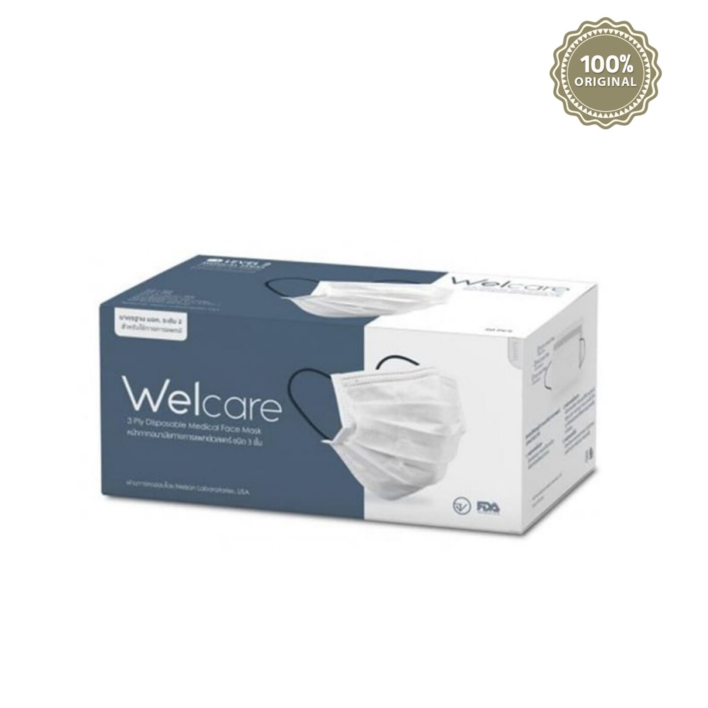 Welcare Mask Level 2 Medical Series เวลแคร์ หน้ากากอนามัยทางการแพทย์ ระดับ 2 สีขาว 1กล่อง/50ชิ้น Welcare หน้ากากอนามัยทางการแพทย์เวลแคร์ ระดับ 2 หน้ากากอนามัย 3 ชั้น ใช้ครั้งเดียว มาตรฐาน มอก.2424-2562 Soft Spandex Ear-loop (Latex free) สายคล้องหูถักทอแบบพิเศษ ความยืดหยุ่นสูง น้ำหนักเบา ลดการรัดต