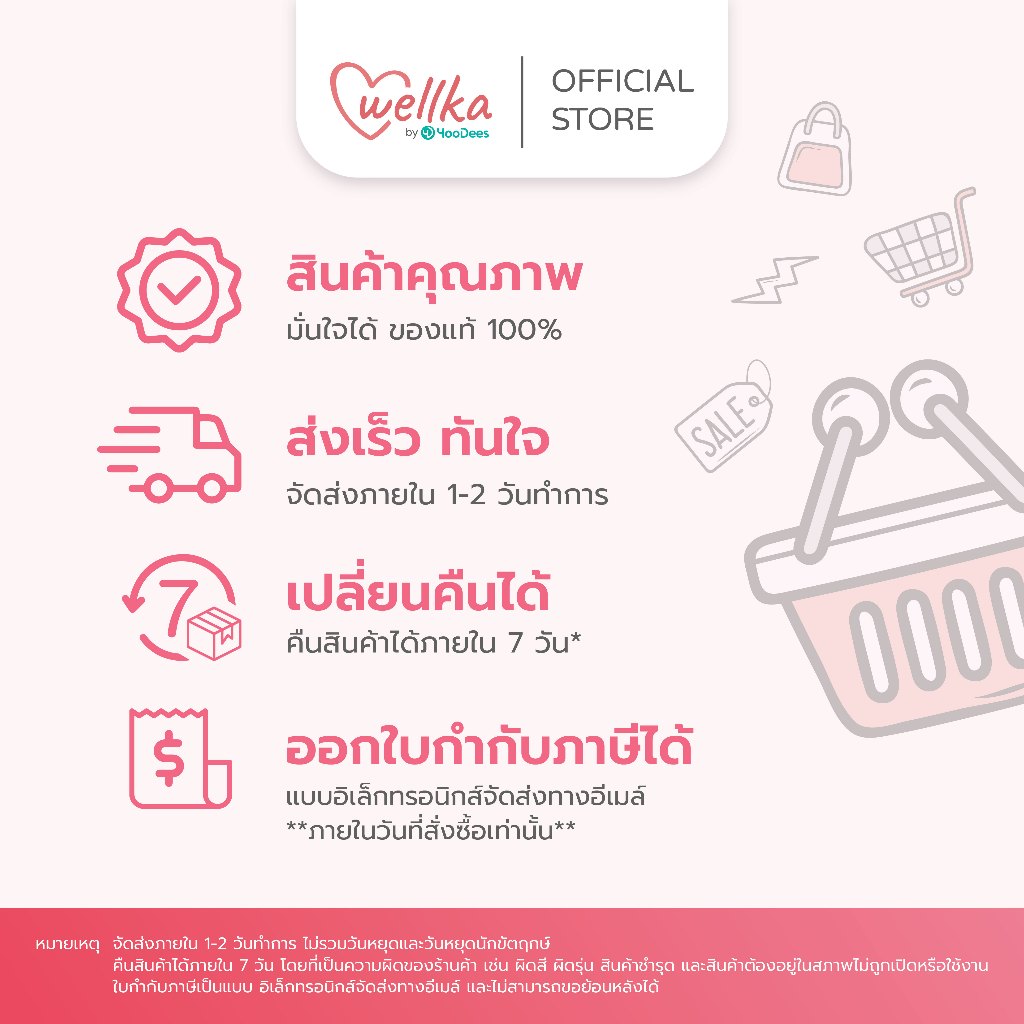 ... ึง และการแพ้หรือระคายเคือง เนื่องจากไม่มีส่วนผสมของยางธรรมชาติ สิขสิทธิ์เฉพาะ Welcare หน้ากากอนามัยใช้ครั้งเดียว หน้ากาก มอก. ระดับ 2 ฺBFE>=99% VFE>=99% PFE 0.1 um ความสามารถในการหายใจ < 4mmH20/cm2 ความสามารถในการป้องกันของเหลวซึมผ่าน 80 mmHg ความสามารถในการทนการลามไฟ ระดับ 1 สายคล้องหูถักทอแบบพิเศษ (Soft Spendex) หมายเลขใบอนุญาต/อย. 65-1-3-2-0000294 หมายเลขมอก. มอก.2424-2562 วิธีการใช้งาน ใช้สายคล้องหูสวมไปที่หูทั้งสองข้าง, คลี่หน้ากากออกแล้วสวมให้พอดีกับใบหน้า พร้อมกดแถบลวดที่จมูกให้พอดี
