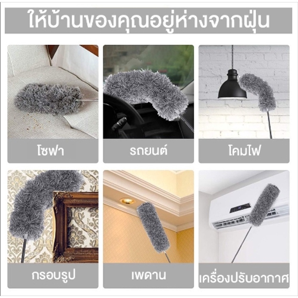 ไม้ปัดฝุ่น ยืด-หด ปรับขนาดได้ 2.8 เมตร ไม้ปัดฝุ่นยาว ที่ปัดฝุ่น ไม้ปัดฝุ่นไมโครไฟเบอร์ ไม้กวาดหยากไย่ - ทำความสะอาดเพดาน ฝุ่นหลังแอร์ หลังตู้เสื้อผ้า - ดูดจับหยากไย่ง่าย ห้วปัดฝุ่นสามารถจับโค้งงอได้เข้าถึงได้ทุกซอก - ดูดฝุ่นด้วยไฟฟ้าสถิต - ผลิตจากเส้นใยไมโครไฟเบอร์ ดูดเก็บฝุ่นได้ดีเยี่ยม - สามา