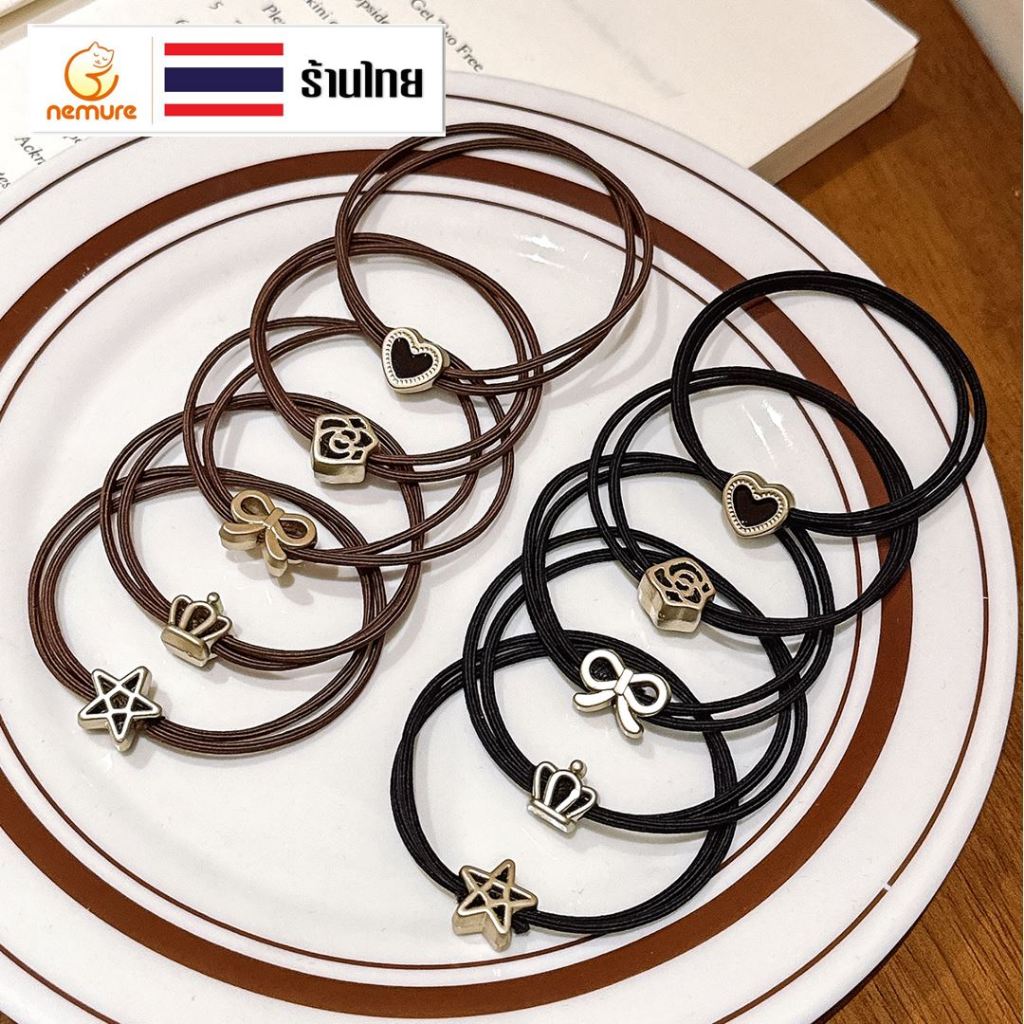 (A-299) ยางรัดผมเส้นคู่ แบบเรียบ แต่งจี้ลายน่ารัก ยางแน่น ขายแบบคละลาย