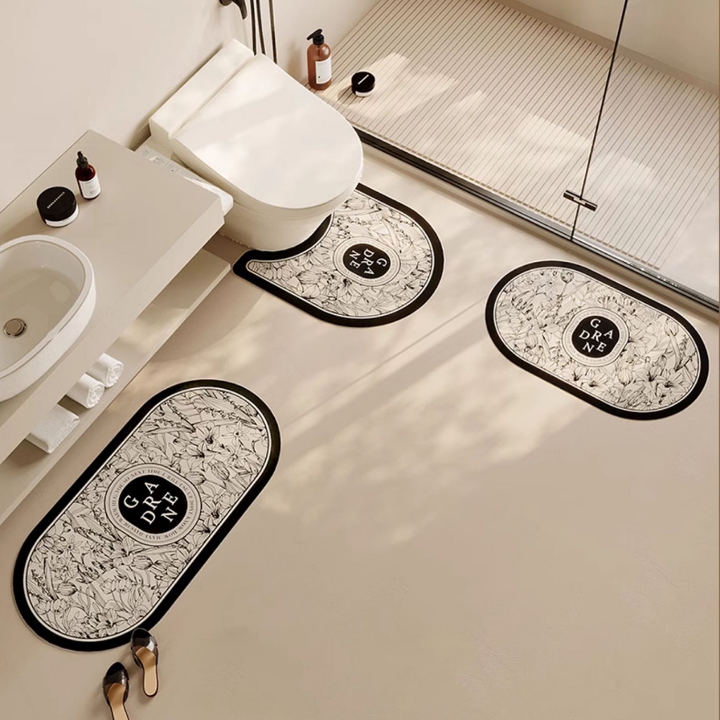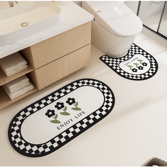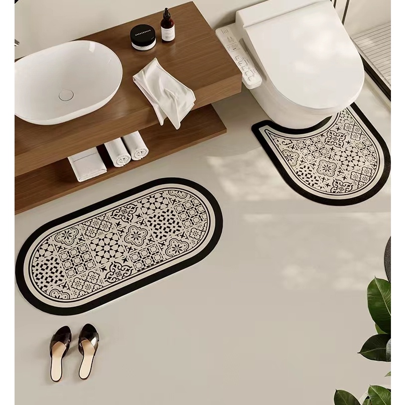 พรมเช็ดเท้าห้องน้ำ พรมปูพื้น Setวางพื้นห้องน้ำ พรมเช็คเท้าสไตล์เรโทร พรมปูพื้นห้องน้ำรูปตัว U กันลื่นดูดซับน้ำได้ดี
