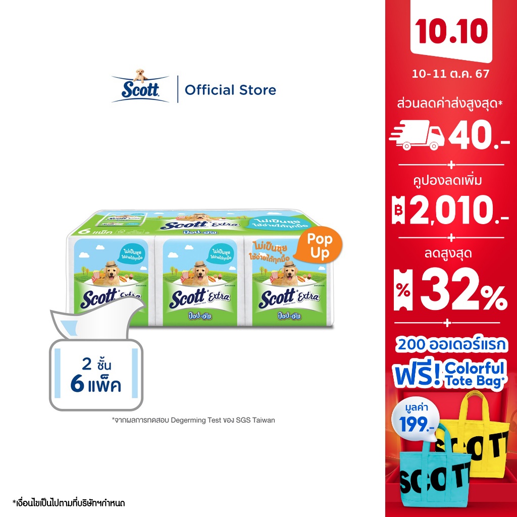 "สก๊อตต์® เอ็กซ์ตร้า ป๊อป-อัพ หนา 2ชั้น กระดาษทิชชูเนื้อเหนียวนุ่ม ซึมซับดี รูปแบบหยิบใช้ง่าย พกพาสะดวก ทำความสะอาดได้อย่างหมดจด เหมาะสำหรับการใช้งานหลากหลาย เช่น ใช้เช็ดปากหลังรับประทานอาหาร ใช้ง่ายได้ทุกมื้อ Ingredients : Virgin Fiber, water, Special strength formula