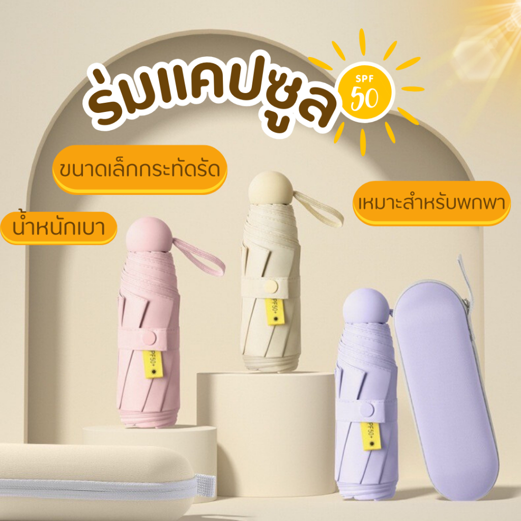 ⛱ ร่มแคปซูล ร่มพับ ร่มสีมินิมอล กัน UV ไซส์พกพา กันยูวี 100% ร่มขนาดเล็ก