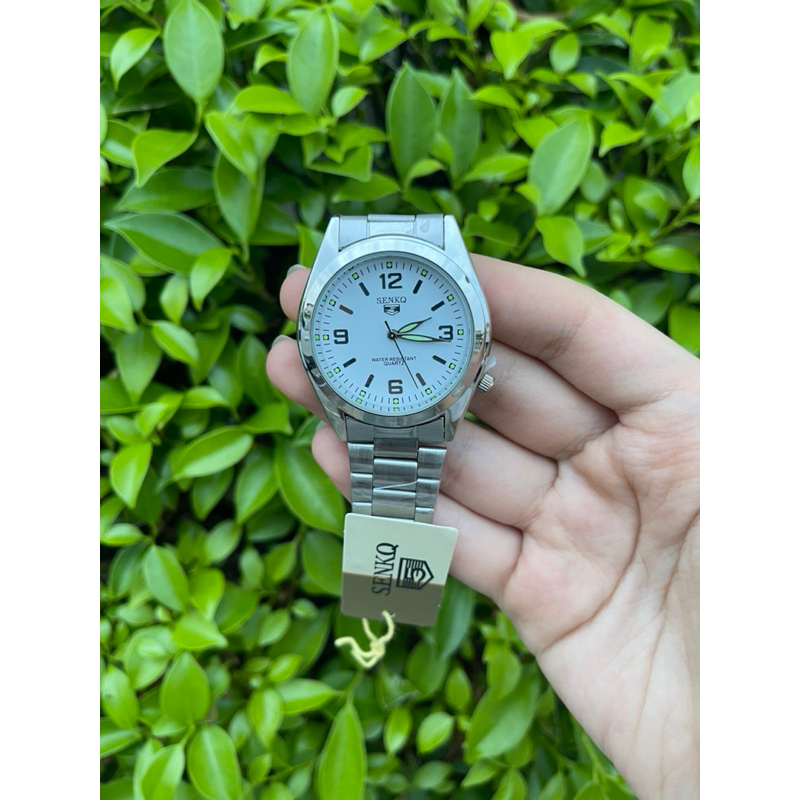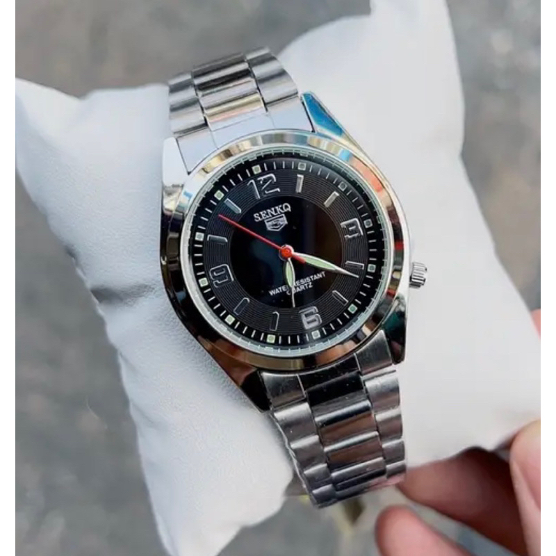 นาฬิกาSENKQ สำหรับผู้ชาย กันน้ำ100%เลยนะคะ สายสแตนเลส หน้าปัดเป็นขีดและเลข(3,6,9,12)ยังมีพรายน้ำอีกด้วย