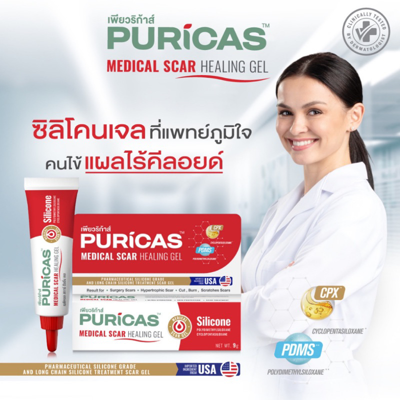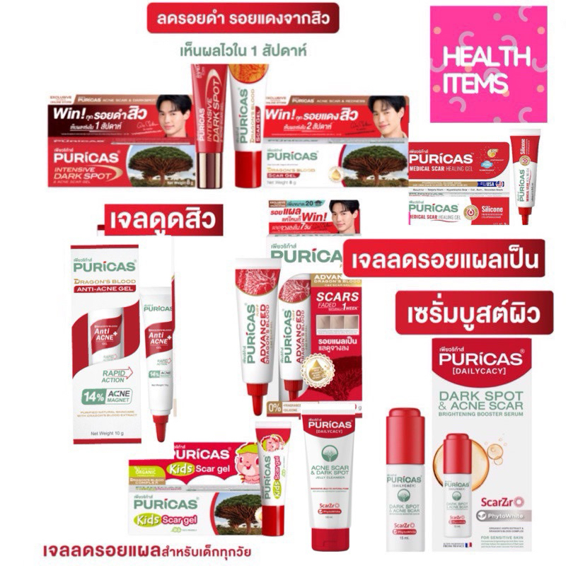 ... ้าส์ 7.Puricas KIDS scar gel 8g. เจลลดรอยแผลสำหรับเด็ก 8.PURICAS Dark Spot & Acne Scar Brightening Booster Serum 15ml เพียวริก้าส์ บูสเตอร์ เซรั่ม.👉👉 รอยแผลผ่าตัด 👉👉 รอยแผลอุบัติเหตุ 👉👉 รอยแผลศัลยกรรม 9.Puricas Medical Scar Healing gel 9g. ซิลิโคนเจลลดรอยแผลเป็น 10 Puricas 20g คู่กับ Dark Spot 3g