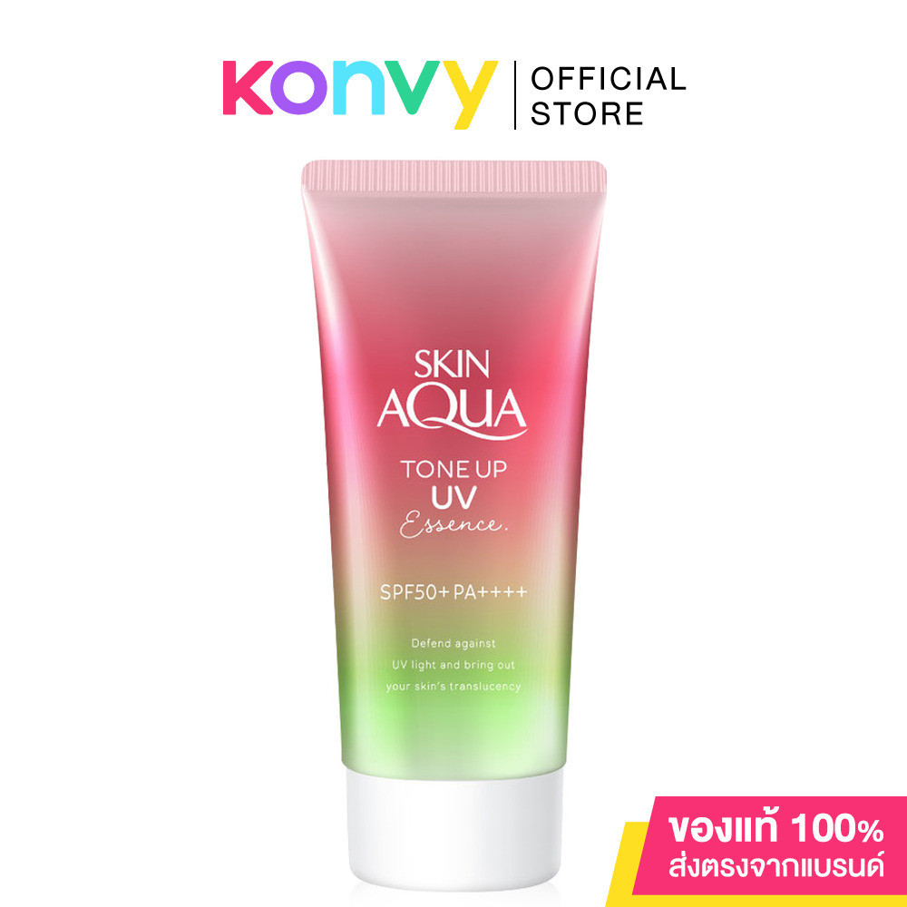 ... วยปรับผิวให้สว่างกระจ่างใสขึ้น รวมทั้งรอยแดงรอยดำจากสิว พร้อมควบคุมความมัน และปกป้องผิวจากแสงแดดด้วย SPF50+/PA++++ • Sunplay Skin Aqua Tone Up UV Essence 80g #Rose Aura เอสเซนส์กันแดดสูตรใหม่ล่าสุดจากญี่ปุ่น ช่วยปกป้องผิวหน้าและผิวกายจากรังสียูด้วย SPF 50+/PA++++ พร้อมควบคุมความมัน และโทนอัพ ปรับผิวให้สว่างกระจ่างใสแลดูอมชมพูขึ้น ให้คุณเฉิดฉาย เปล่งประกายสวยที่สุด • Sunplay Skin Aqua Tone Up Essence 80g #Latte Beige เอสเซนส์กันแดดสูตรใหม่ล่าสุดจากญี่ปุ่น ช่วยปกป้องผิวหน้าและผิวกายจากรังสียูวีด้วย SPF 50+/PA++++ พร้อมควบคุมความมัน และโทนอัพ ปรับผิวซีดให้อมชมพูสว่างออร่าขึ้น ให้คุณเฉิดฉาย เปล่งประกายสวยที่สุด วิธีใช้: ทาทั่วผิวหน้าทุกเช้าก่อนออกแดด