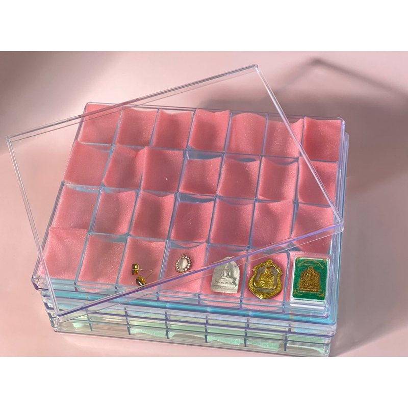 กล่องใส่พระพลาสติกจัดเก็บเครื่องประดับมีฝาครอบฟองน้ำด้านใน 14/24/28/36/50ช่องเล็กคละสี