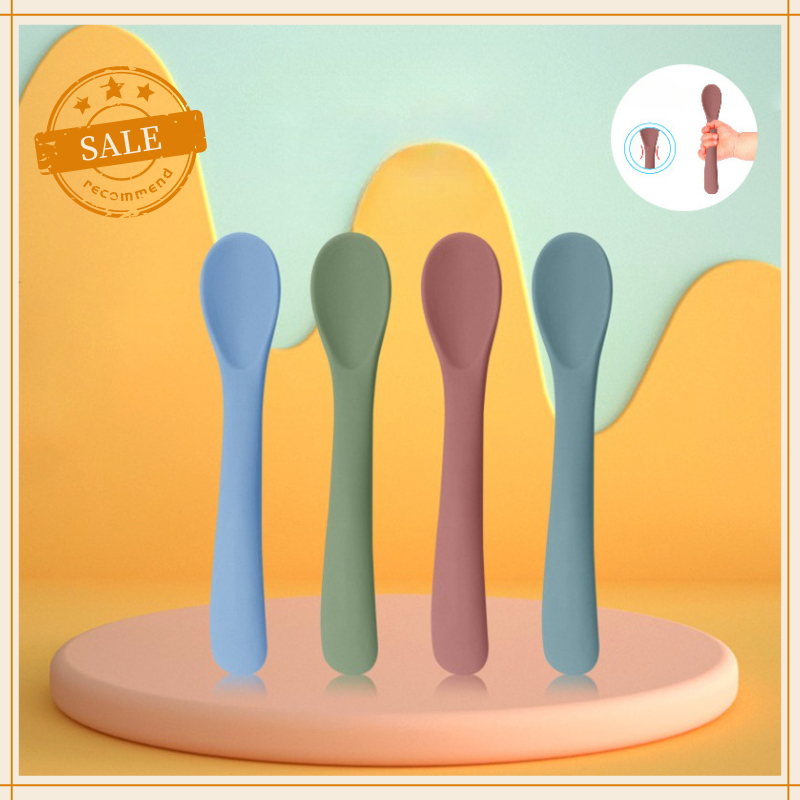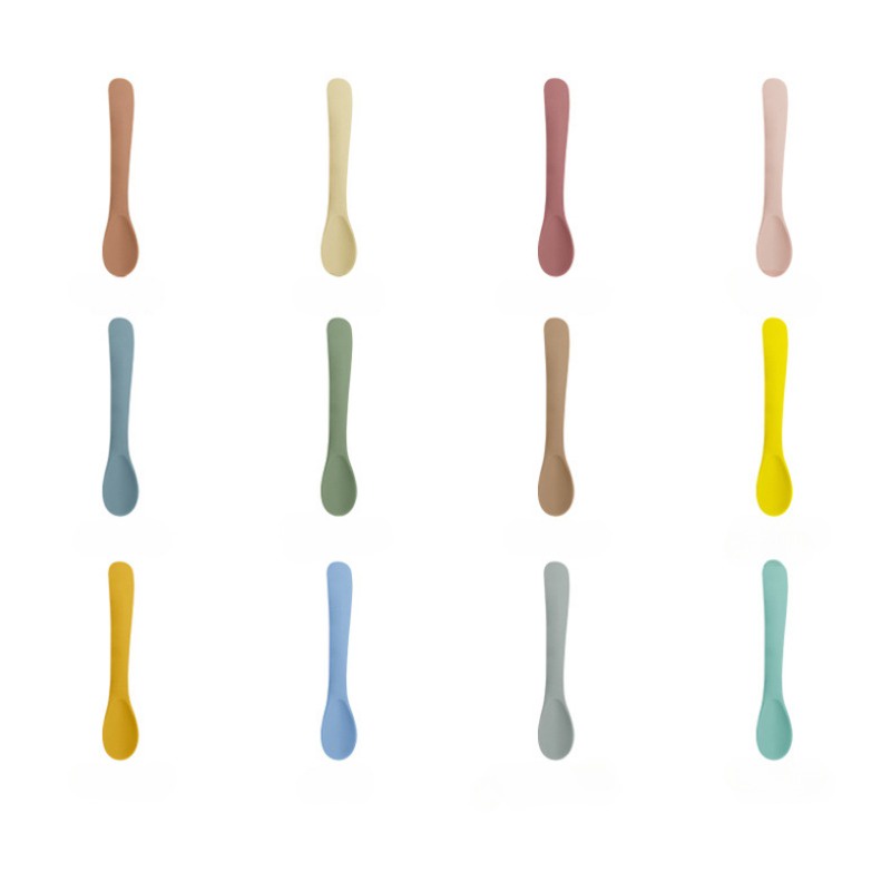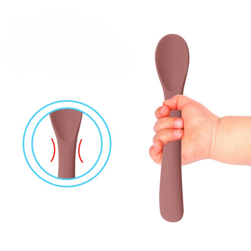 ช้อนซิลิโคน เกรดอาหาร ช้อนโค้ง ขนาดเล็ก ช้อนอาหารเด็ก ช้อนอาหารเด็ก บนโต๊ะอาหาร ช้อนนุ่ม ปลอดสาร BPA