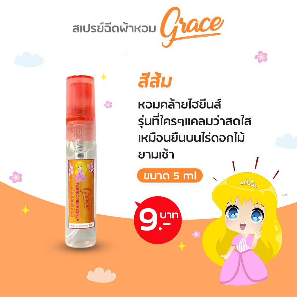 สเปรย์ฉีดผ้าหอมGRACEราคา9บาทGraceFabric5ml.(ขั้นต่ำ3ขวดนะคะอ่านก่อนสั่งจ้า)