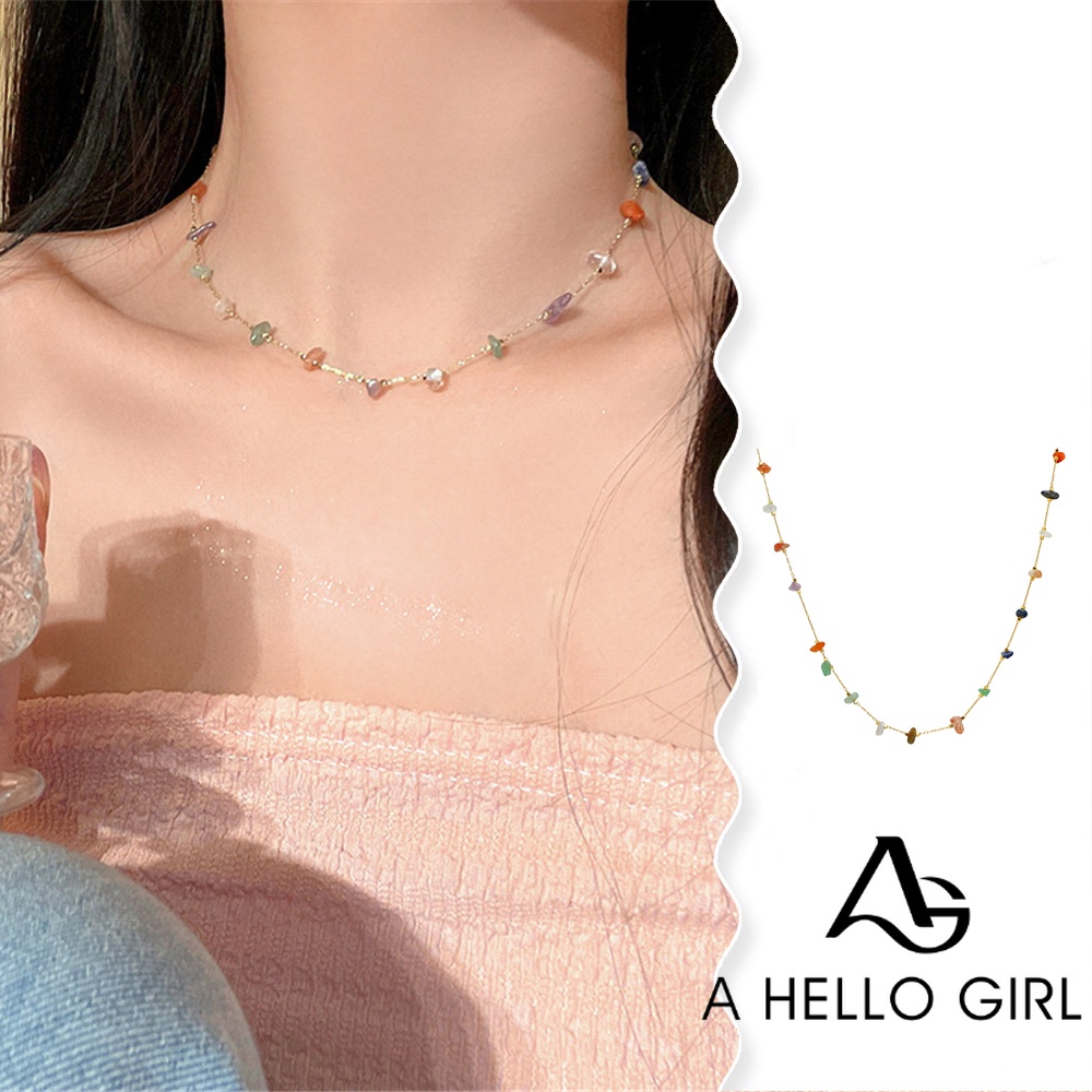 A HELLO GIRL สร้อยคอโซ่ จี้หินหยาบ ทรงเรขาคณิต แบบเรียบง่าย แฟชั่นฤดูร้อน สําหรับผู้หญิง