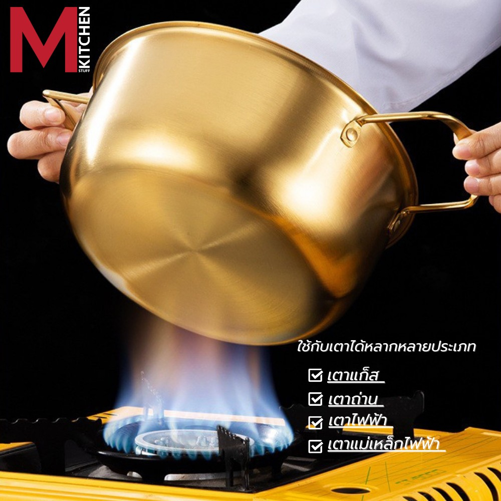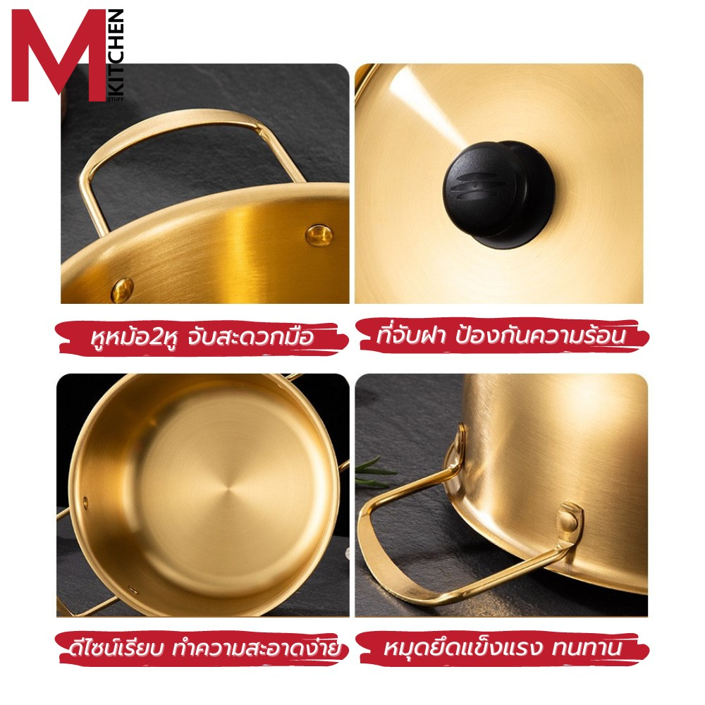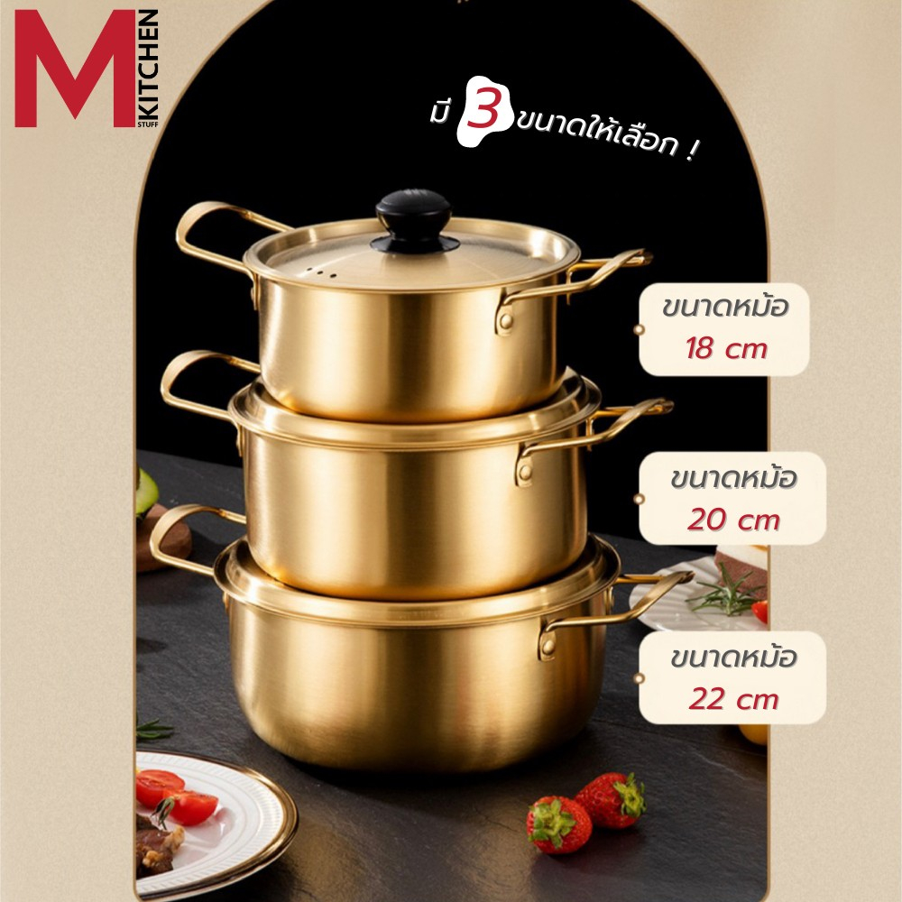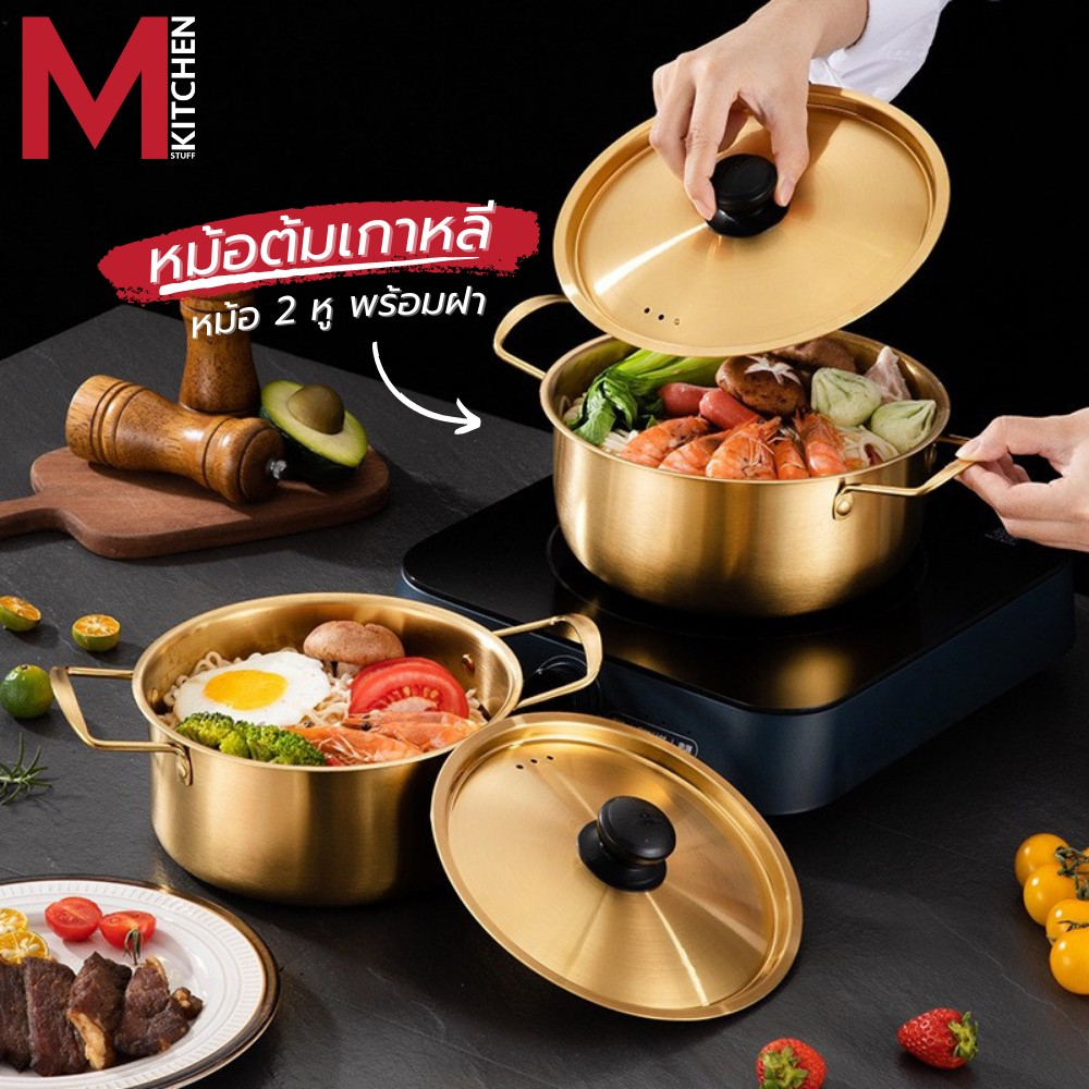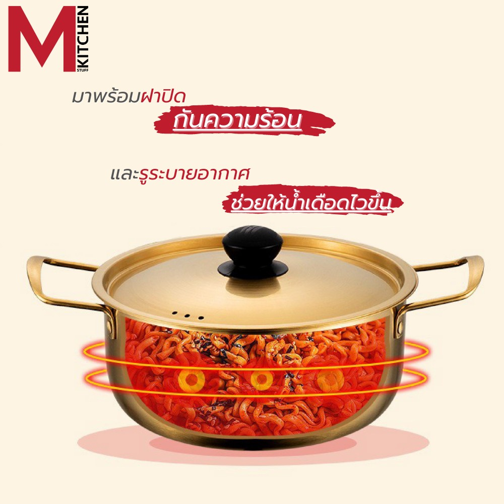M KITCHEN หม้อ หม้อเกาหลี หม้อรามยอน หม้อสองหู พร้อมฝา หม้อทองเหลือง หม้อสแตนเลส หม้อมาม่า (A1)