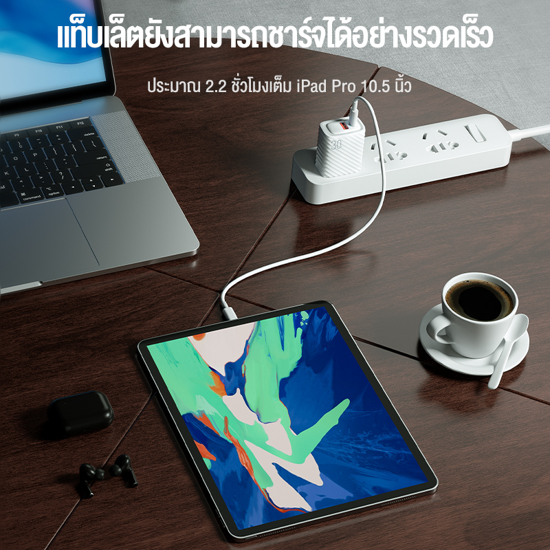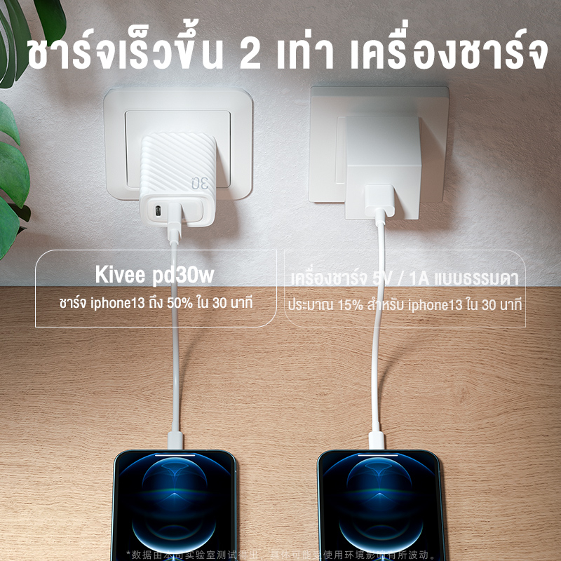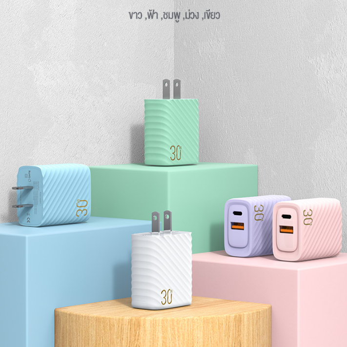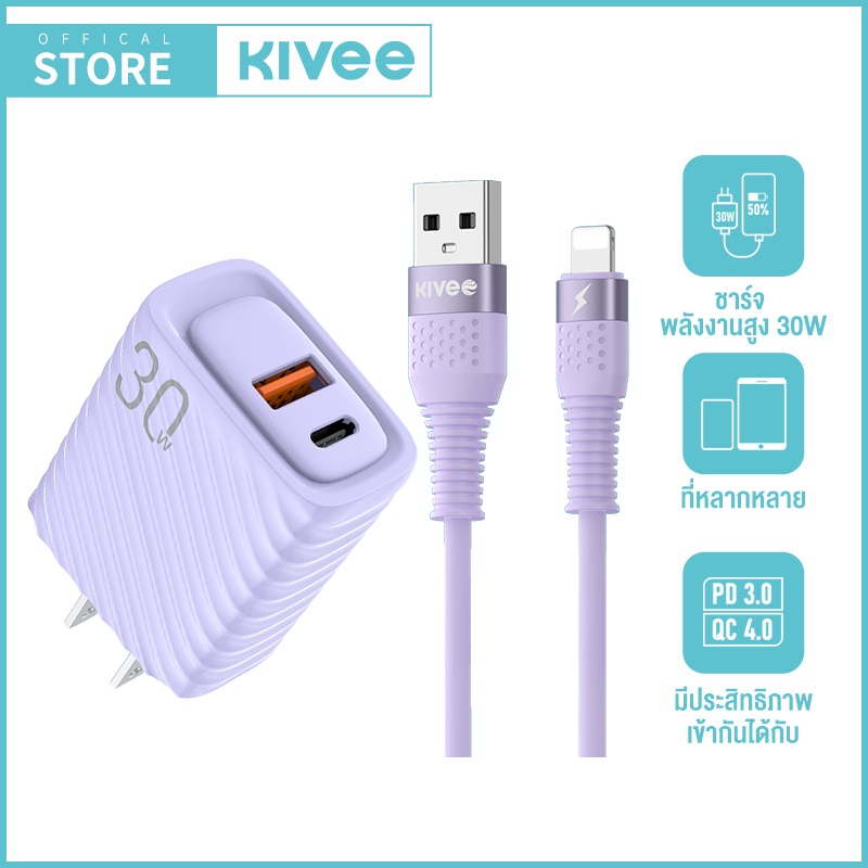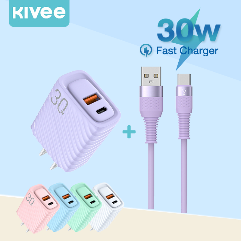 KIVEE 30W หัวชาร์จเร็ว USB+Type C QC4.0 PD3.0 Macaron ใช้กับ iPhone Samsung phone ชุดชาร์จด่วน fast charger set