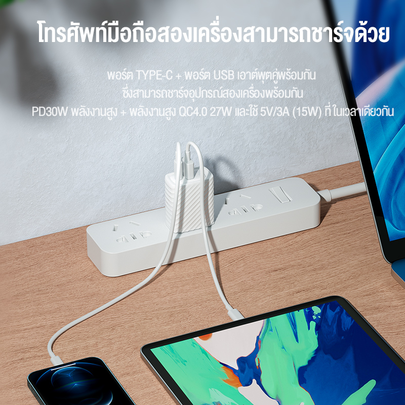 ... 67*46*27mm น้ำหนัก : 36g รายการบรรจุ: กล่อง + หัวชาร์จ + ใบรับรอง + คู่มือการใช้งาน สองพอร์ตชาร์จเร็ว A+C สองพอร์ต การชาร์จอย่างรวดเร็ว ใช้ได้ทั่วโลก ประสบการณ์การชาร์จเร็วสองพอร์ต USB+TYPE-C dual-port design, เอาต์พุตแยก, ใช้งานได้พร้อมกัน ชาร์จเร็ว PD 30W+QC 30W