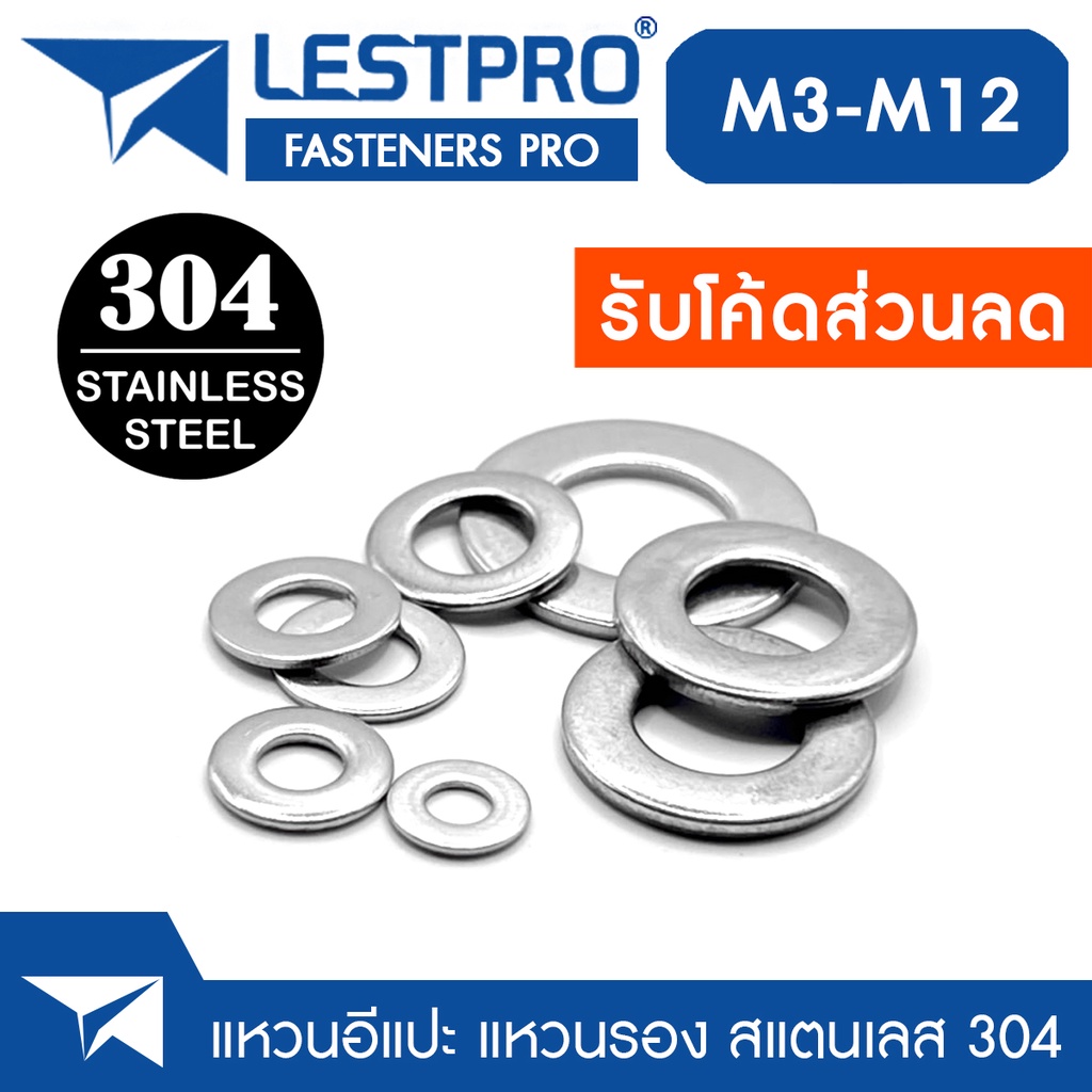 แหวนอีแปะ แหวนรอง น็อตสกรู สแตนเลส 304 M3 M4 M5 M6 M8 M10 M12 / Flat Washer Stainless Screw DIN125