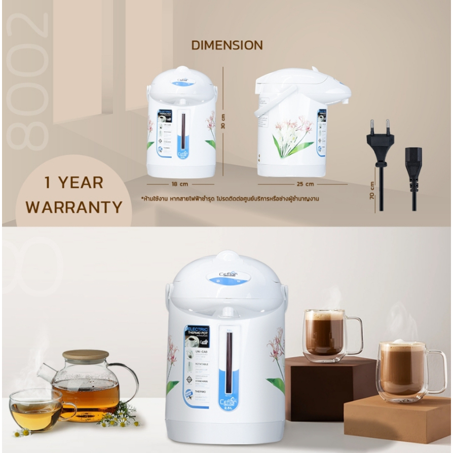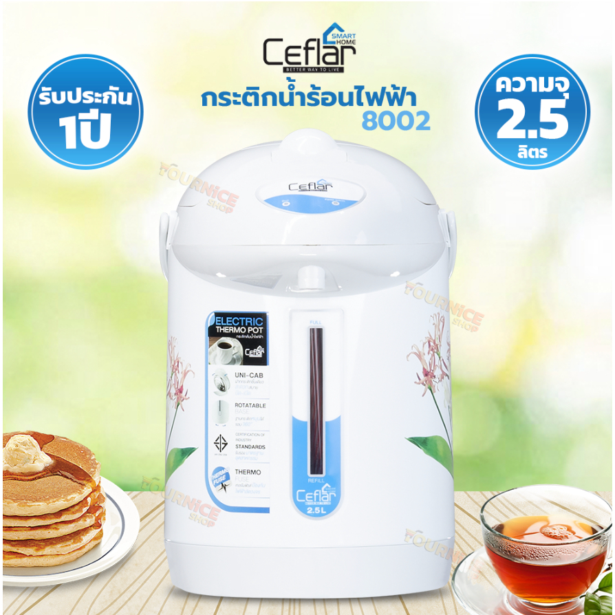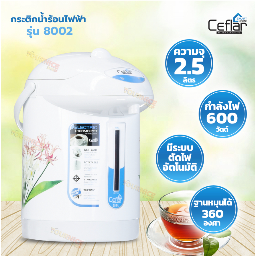 CEFLAR กระติกน้ำร้อนไฟฟ้า รุ่น 8002 ความจุ 2.5 ลิตร กำลังไฟ 600วัตต์ (รับประกัน 1 ปี) กระติกน้ำราคาถูก กระติกน้ำราคาถูก