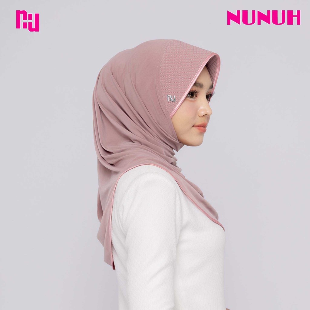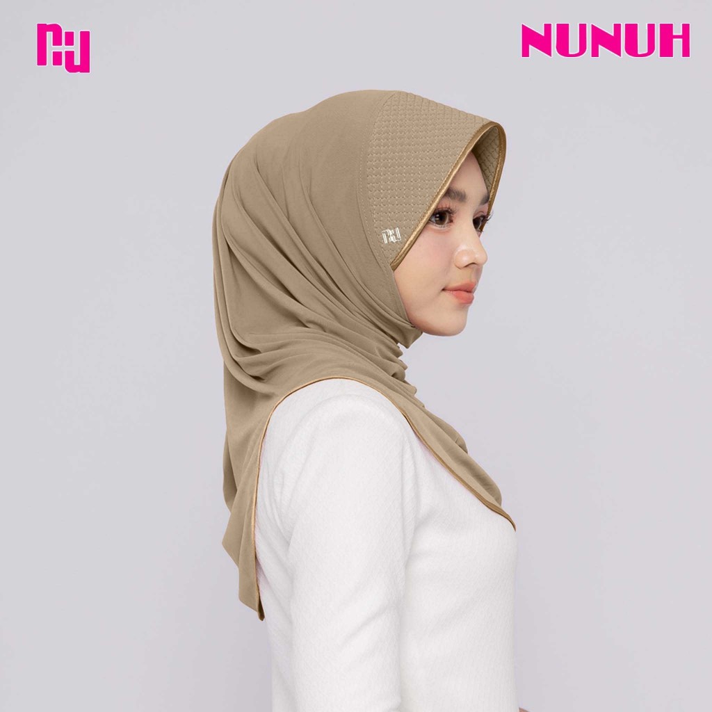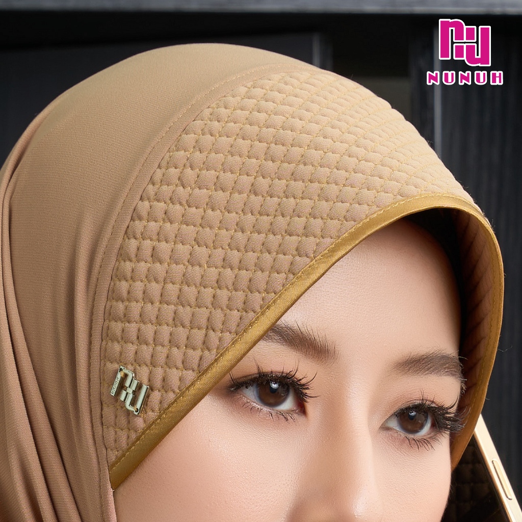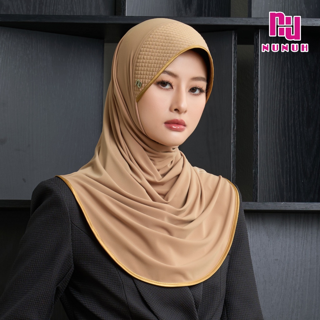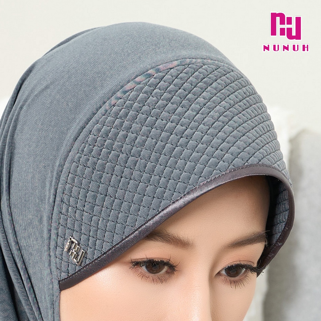 NUNUH CLASSIC ผ้าคลุมฮีญาบแบบสวมสำเร็จคลาสสิค ปัก NU ทรงฟองน้ำตาราง(FN-N-NU)