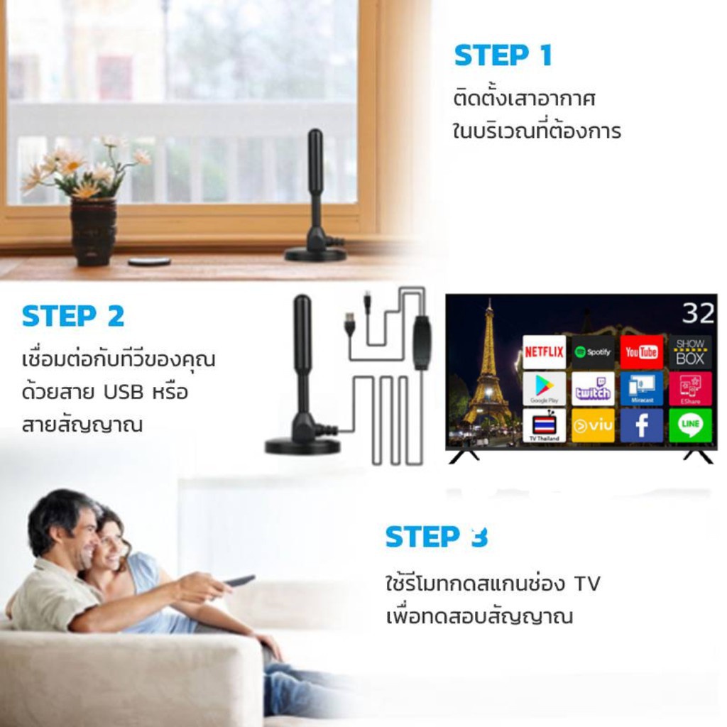 ✅ COD 👍【จัดส่งในวันเดียวกัน】 👍จัดส่งภายใน 12-24 ชั่วโมง 👍สามารถรับได้ภายใน 2-3 วัน 💯【การประกันคุณภาพ】 💯หากสินค้าชำรุดคืนเงิน 100% เปลี่ยนฟรี ⭐⭐รับประกันหลังการขาย 1 เดือน⭐⭐ DIGITAL TV ANTENNA รุ่น DVB-T2 เสารับสัญญาณทีวี ดิจิตอล รายละเอียดสินค้า - แบรนด์ใหม่ 100% และมีคุณภาพส