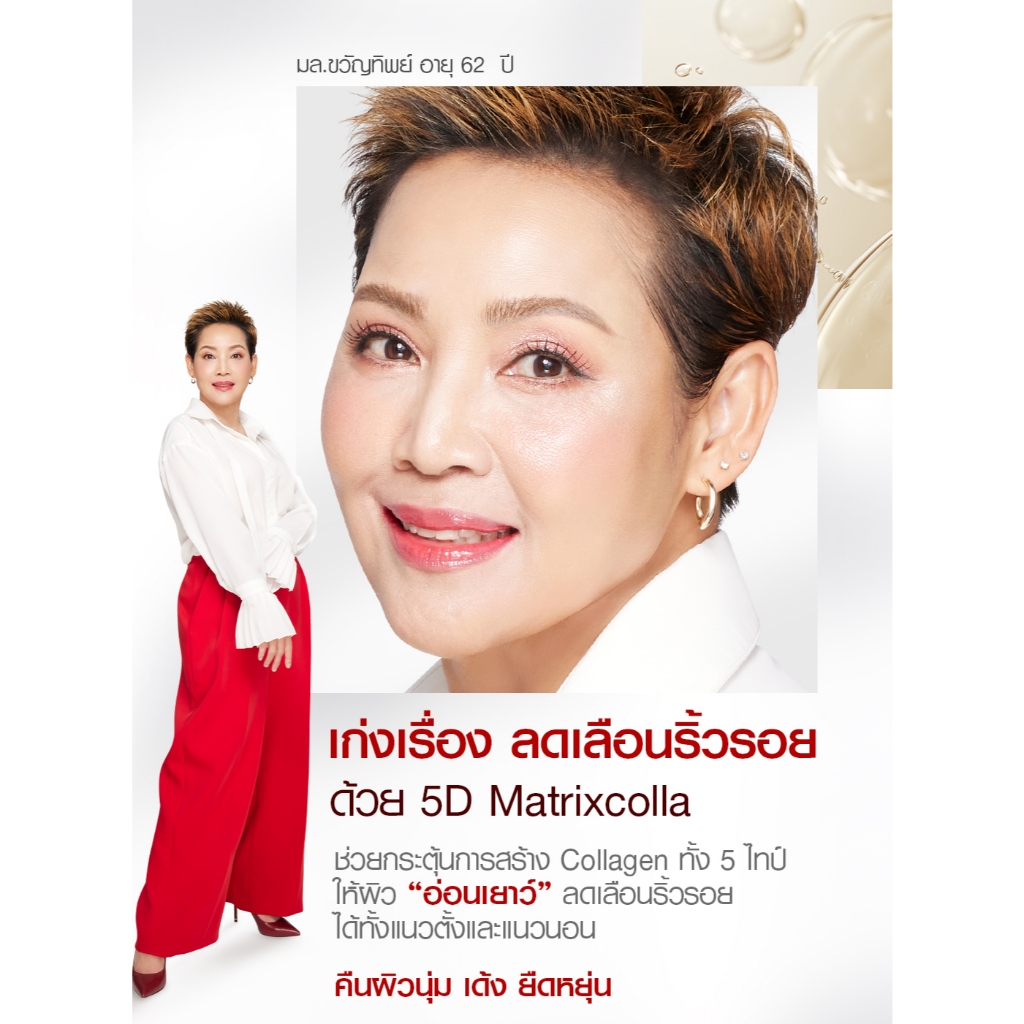... Mask 12 ครั้ง ช่วยฟื้นบำรุงอย่างล้ำลึก ถึง 5 มิติ เผยผิวใหม่อ่อนเยาว์กว่าที่เคย -90% ของผู้ทดลองใช้พบว่าริ้วรอยลดลง และกระชับขึ้น -87% ของผู้ทดลองใช้พบว่าผิวได้รับความชุ่มชื้นทันทีที่ใช้ -82% ของผู้ทดลองใช้พบว่าผิวกระจ่างใสใน 7 วัน 5 สารสกัดสําคัญ ที่คิดค้นมาเพื่อแก้ปัญหาผิว 1. 5D Matrixcolla ช่วยกระตุ้นการสร้าง Collagen ให้ผิวคืน “ความอ่อนเยาว์” 2. HyWhite® ช่วยลดเลือนฝ้า กระ จุดด่างดำ และ a-Linoleic Acid มีคุณสมบัติช่วยให้ผิวขาวกระจ่างใส เพิ่มความสม่ำเสมอให้กับสีผิว 3. สารสกัดยีสต์จาก ดอกโฮยาคาร์โนซ่า เติมความแข็งแรงให้กับผิว มอบความแข็งแรงให้กับผิวจากภายใน ช่วยให้ผิวสุขภาพดี เปล่งปลั่ง 4. PatcH2O® ช่วยให้ผิวชุ่มชื่นทันที พร้อมล็อกผิวให้ฉ่ำน้ำยาวนาน ถึง 5 วัน หรือ 120 ชั่วโมง *เมื่อใช้เป็นประจำต่อเนื่อง และ สามารถปกป้องผิวจาก มลภาวะฝุ่น PM2.5 5. สาหร่ายซุยเซ็นจิ จากประเทศญี่ปุ่น ซึ่งเติบโตในแหล่งน้ำที่อุดมไปด้วยแร่ธาตุจากภูเขาไฟอะโซะ (Aso) เกาะคิวชู (Kyoshu) ช่วยปลอบประโลมผิว ให้ผิวรู้สึกผ่อนคลาย ขอแนะนําวิธีการใช้ผลิตภัณฑ์ เพื่อการฟื้นฟูผิวอย่างเต็มประสิทธิภาพ STEP 1 หลังทำความสะอาดผิวหน้า เตรียมผิวพร้อมรับการบำรุง ใช้ไม้พายตักเซรั่มลงบนหลังมือ STEP 2 แต้มเซรั่มลงบนผิวหน้า 5 จุด ได้แก่บริเวณ หน้าผาก ปลายจมูก พวงแก้มซ้าย พวงแก้มขวา และปลายคาง STEP 3 ลูบไล้เซรั่มด้วยปลายนิ้วทั้งสองข้าง เพื่อปลดปล่อยคุณค่าของสารสกัด จากนั้นจึงกดเบาๆ ลงบนผิวหน้าและลำคอ ใช้ทั้งเช้าและเย็น เลขที่ได้รับจดแจ้ง : 11-1-6600001843 *สิ่งที่คุณจะได้รับ 1.Trylagina Age-Defying Collagen Serum 12X ขนาด 30 g. 2 กระปุก 2.Trylagina Age-Defying Collagen Serum 12X ขนาด 5 g. 1 กระปุก 3.Trylagina Age Defense Sunscreen Serum SPF50+ PA++++ ขนาด 30 g. 1 หลอด #trylagina #trylagina #แท้ #โปรพิเศษ #ไตรลาจิน่าแท้ #trylaginaofficial #trilagena #1577shop #ไตรลาจิน่าแท้1577 #trylagina 12x #tylagina #ยกกระชับ #trylagina #collagen #serum #1577ของแท้ #trylaginaครีม #trylagina #promotion #ครีมtrylagina #trilagina กระจ่างใส #trylagina #30กรัม #ไตรลาจิน่า #trilagina #trylagina #1577 #ไตรลาจิน่า12x #ไตราจิน่า #try #tylogina #tryragina #ซีรั่ม #trilagena ของแท้ #Tryla #trylagina #แท้ #trilagena #official #ครีม #กันแดด #ครีมกันแดด #กันยูวี #หน้าคล้ำ #หน้ากระจ่าง
