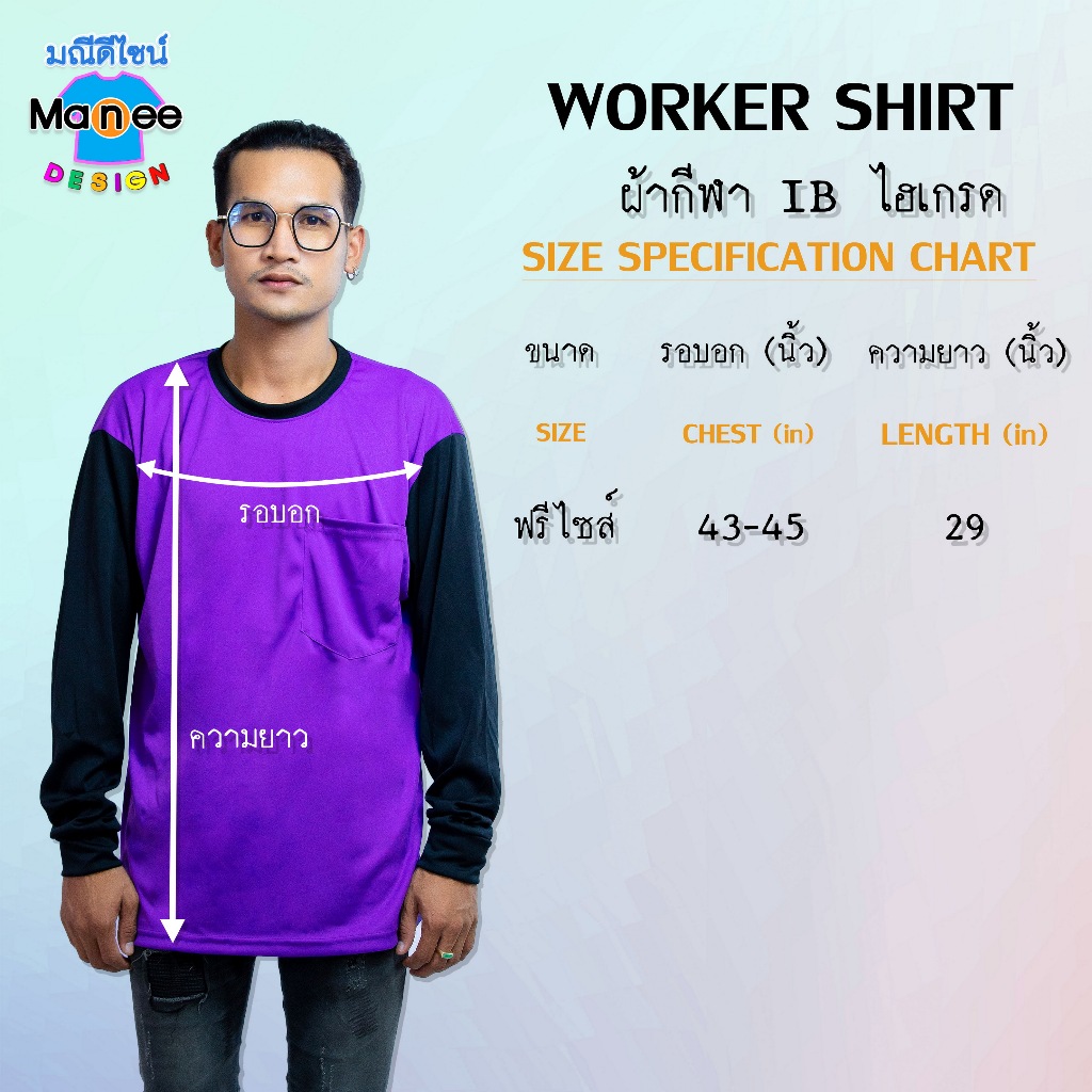 🏳🌈 เสื้อคนงาน ผ้ากีฬา IB ไฮเกรด (ผ้าโพลีเอสเตอร์ 100%) สีไม่ตก ผ้านิ่ม ระบายเหงื่อได้ดี ไม่อับ ไม่ร้อน ซักง่าย แห้งเร็ว ไม่เป็นขน ยับยาก ไม่หด ไม่ย้วย สวมใส่สบาย ✅ คอกลม ✅ เสื้อ ทูโทน 2 สี สวยสะดุดตา ✅ กุ๊นคอสีดำ ✅ แขนยาว ✅ มีกระเป๋า ✅ ผ้าดีมีมาตรฐาน สกรีนสวย ✅ มีสินค้าพร้อมจัดส่งทุก