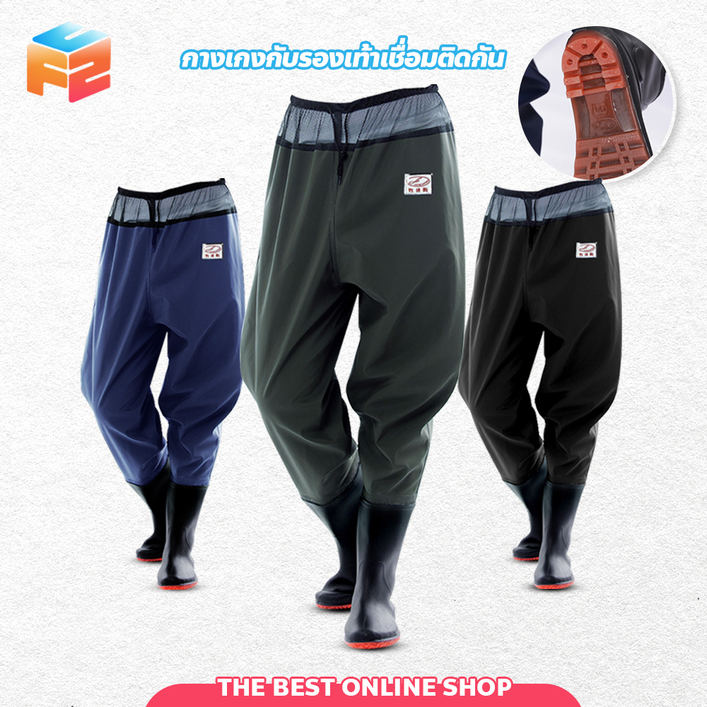 กางเกงพร้อมรองเท้าบูท ขนาด 36-47 กันน้ำ PVC อย่างดี กางเกงทำสวน ทำไร่ ใสสบาย