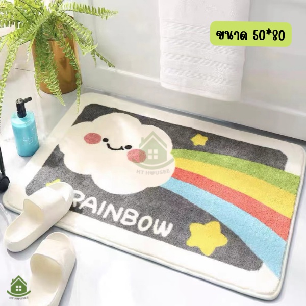 พรมเช็ดเท้า พรมเนื้อนุ่ม กันลื่น ขนาด50*80/40*60ซม มีหลายลาย แห้งไว ซึมซับน้ำได้ดี สไตล์มินิมอล ตกแต่งบ้าน HT HOUSEE