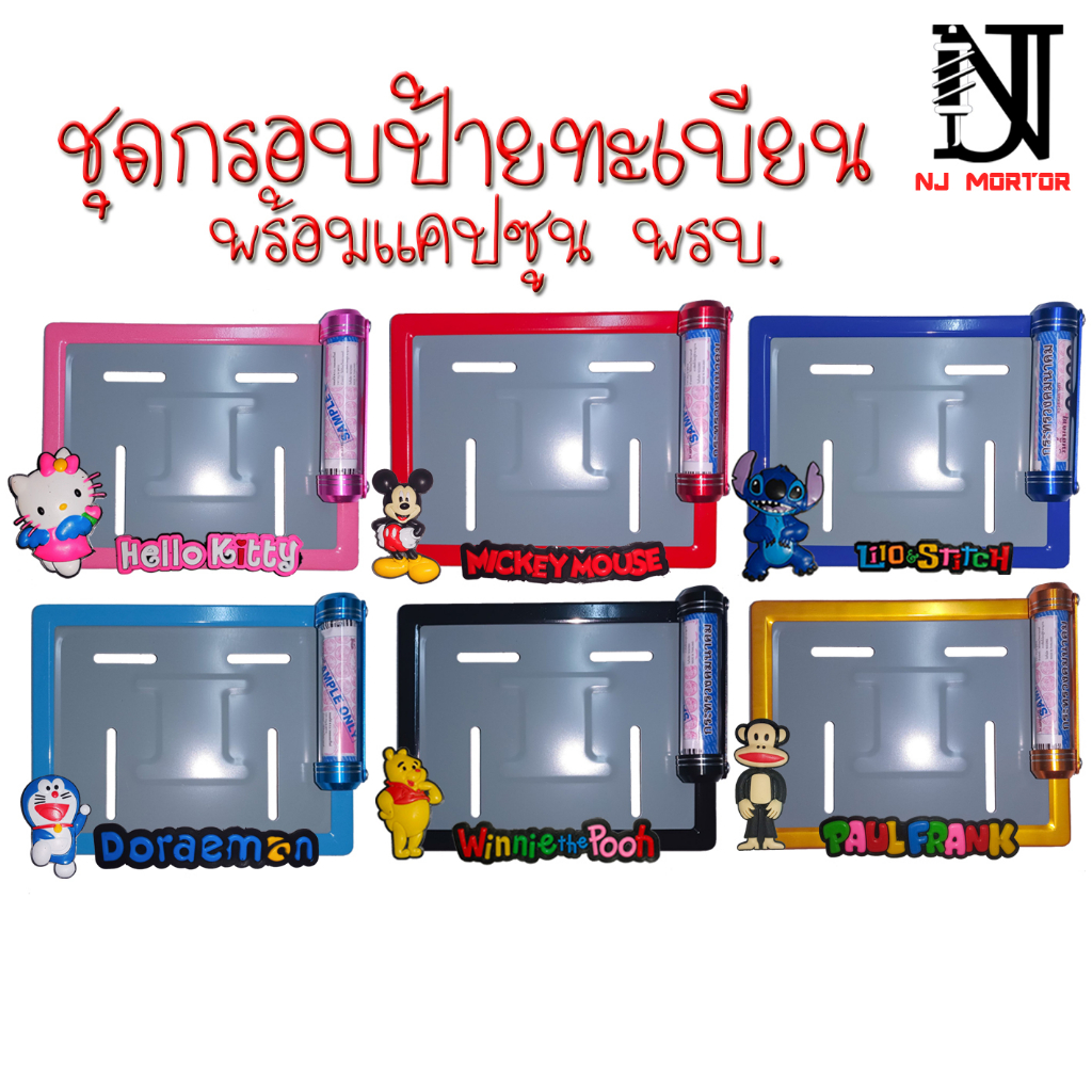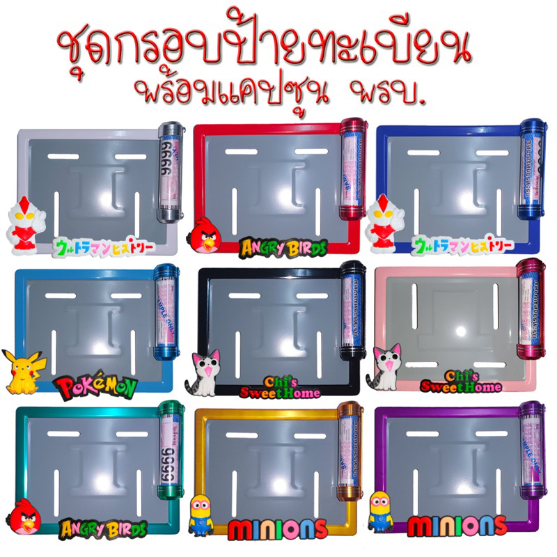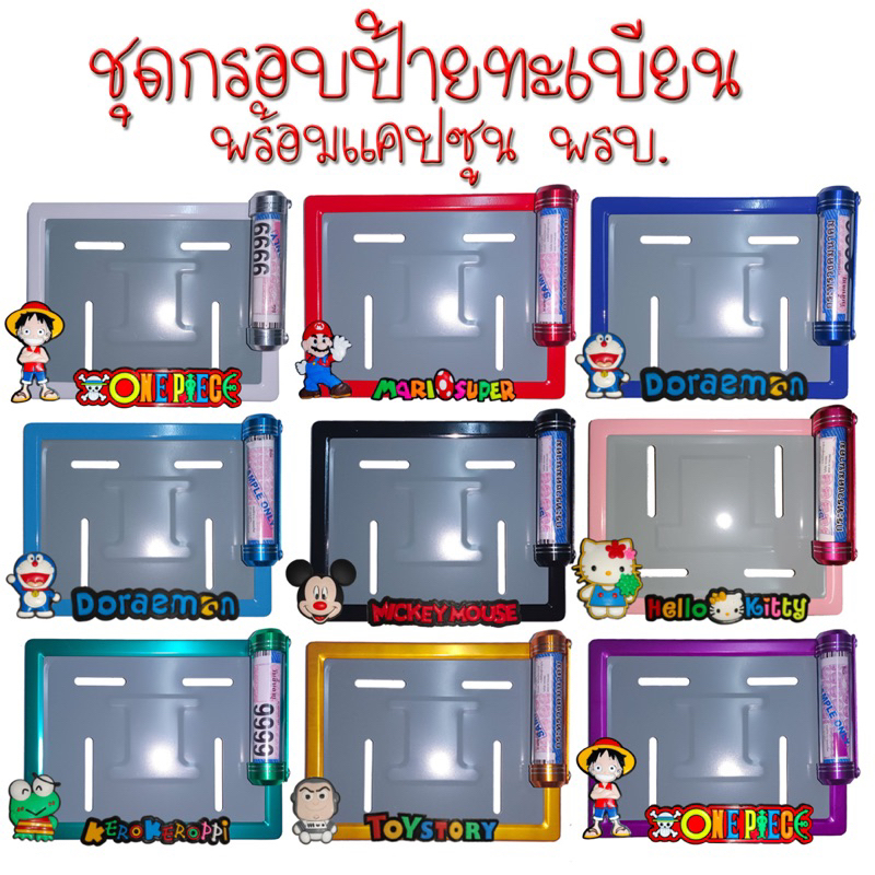 สินค้าไปตามภาพตัวเลือก เลือกลายตามรหัสสินค้า ทั้งชุดกรอบป้ายเหล็กและแคปซูนมีเนียม 115 บาท เฉพาะกรอบป้ายเหล็กไม่การ์ตูนไม่มีแคปซูน 44 บาท ชื่อสินค้า :: กรอบป้ายและแคปซูน พรบ. มีเนียมเกรดหนา กันน้ำ 💯% ป้ายเหล็กอย่างดี เกรดสูงสุด ❤อุปกรณ์ครบชุด 1. กรอบป้ายทะเบียน 2.น๊อต 3.แผ่นหลัง ❤ข