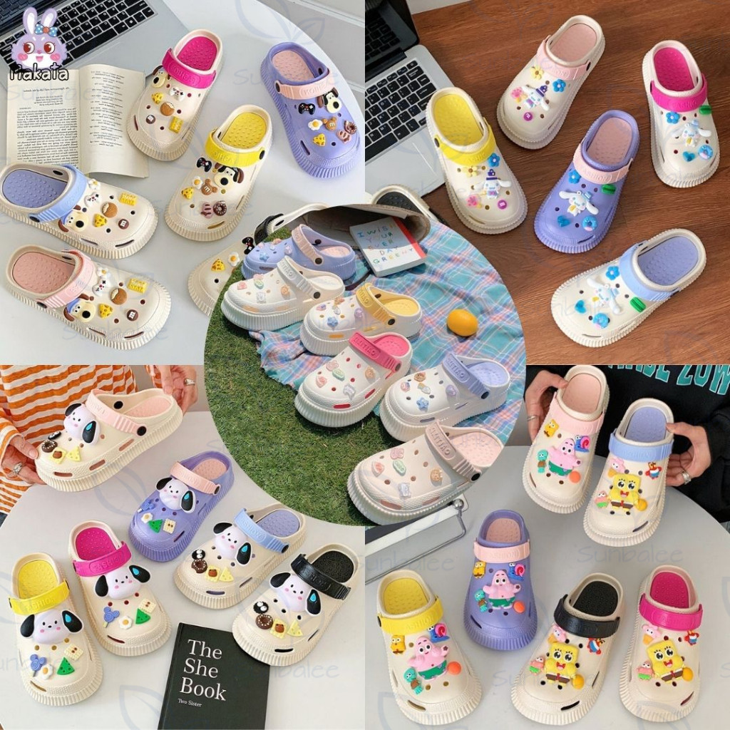SHO-H-25 🌻 รองเท้าหัวโต แถมตัวติดน่ารัก สายรัดส้น สีพาสเทลทูโทน พื้นนิ่มใส่สบาย เสริมส้น สินค้าพร้อมส่ง