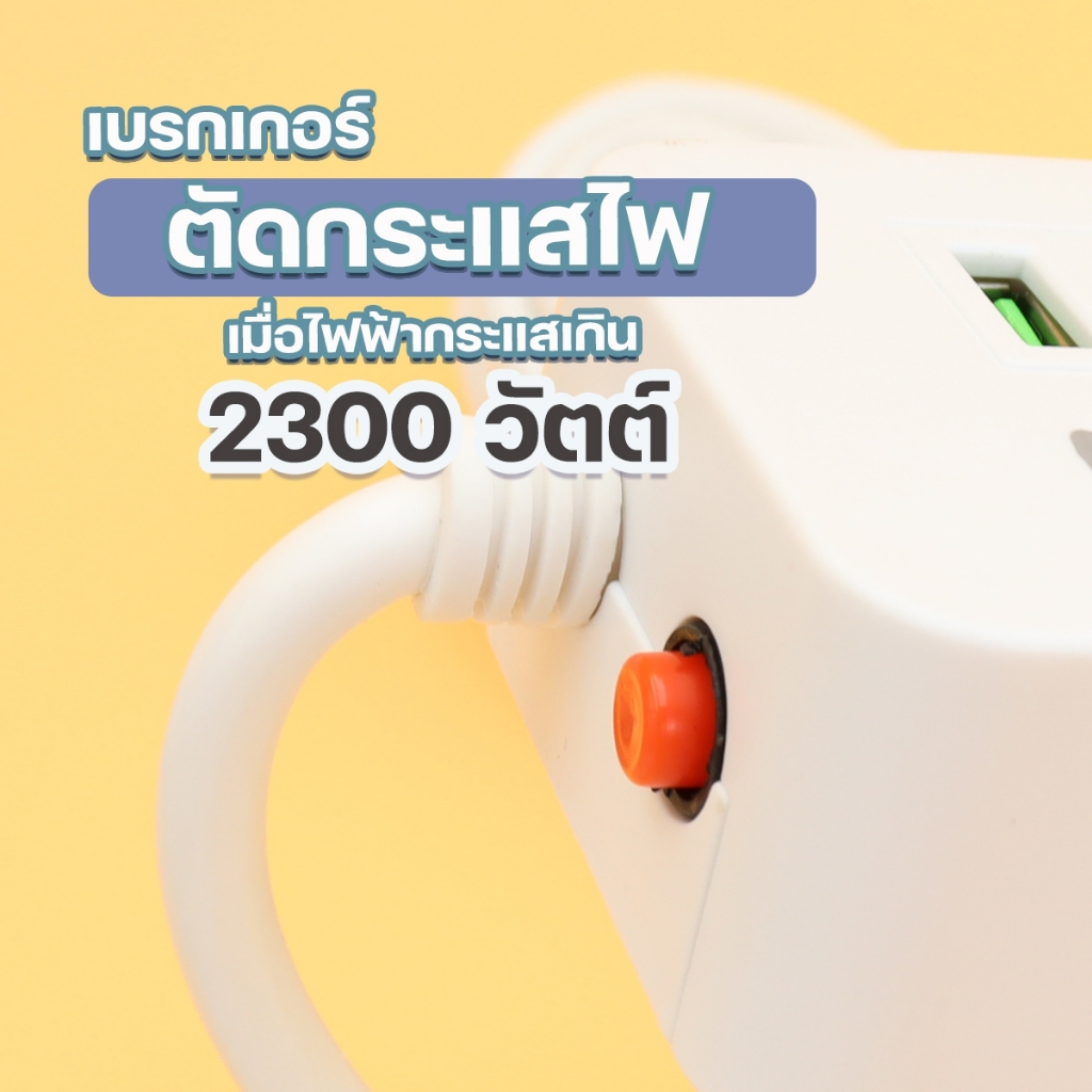 [ลูกค้าใหม่เริ่มต้น 1.- ]ปลั๊กไฟ ปลั๊กพ่วง3ตา PAE-35U 37U 38 38U มีช่องUSB2 ไทป์ซี 2ช่อง 2300W ความยาว 3 5 10 เมตร