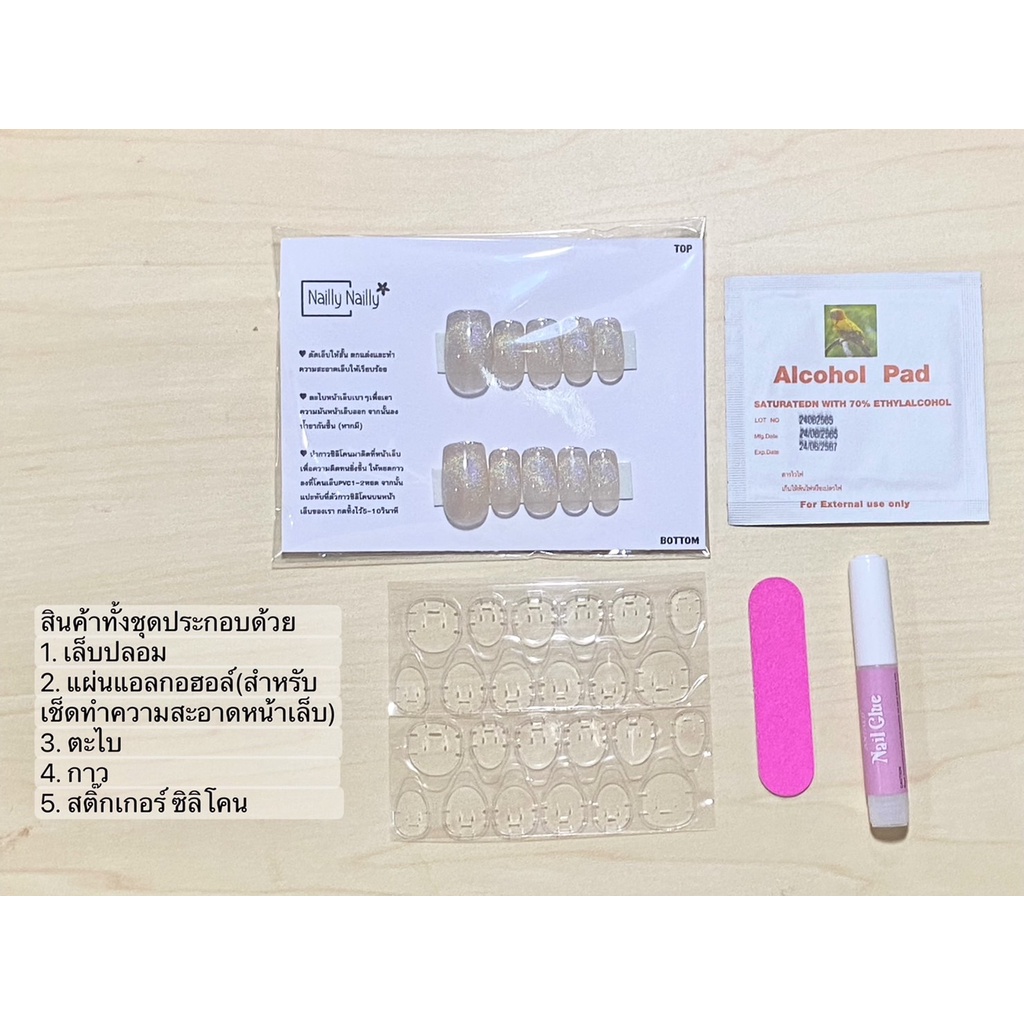 ... ห้ทางร้านได้ทางแชทเลยนะคะ และ หากลูกค้าต้องการ "เปลี่ยนทรงเล็บ" เป็นทรงตามที่ต้องการ รบกวนแจ้งผ่านทางแชทเช่นกันค่ะ*** งานสีของเล็บอาจมีเพี้ยนเล็กน้อยจากภาพนะคะ เนื่องจากสีของแสงกล้องและความสว่างของภาพ อุปกรณ์ทั้งหมดในสินค้า1ชิ้นจะประกอบด้วย 1. ตะไบ 2. กาว 3. สติ๊กเกอร์ซิลิโคน 4. เล็บปลอม 5. แผ่นแอลกอฮอล์ ปล. ลูกค้าสามารถเลือกติดโดยใช้แค่ซิลิโคนหรือกาวอย่างใดอย่างนึงได้ หรือสามารถใช้ทั้ง2อย่างติดคู่กัน ก็ได้เช่นกัน ส่วนเทคนิคการติดเล็บปลอมของทางร้าน 1. ตัดเล็บให้สั้น ตกแต่งและทำความสะอาดหน้าเล็บให้เรียบร้อย 2. ตะไบหน้าเล็บเบาๆ เพื่อเอาความมันหน้าเล็บออก จากนั้นลงน้ำยากันชื้น (หากมี) 3. นำกาวซิลิโคนมาติดที่หน้าเล็บของเรา เพื่อความติดทนยิ่งขึ้นให้หยดกาวน้ำลงที่โคนเล็บปลอม 1-2หยด จากนั้นนำเล็บปลอมแปะทับบนตัวกาวซิลิโคนบนหน้าเล็บ กดทิ้งไว้เล็กน้อย5-10วินาที ขอบคุณลูกค้าที่น่ารักทุกท่านค่ะ