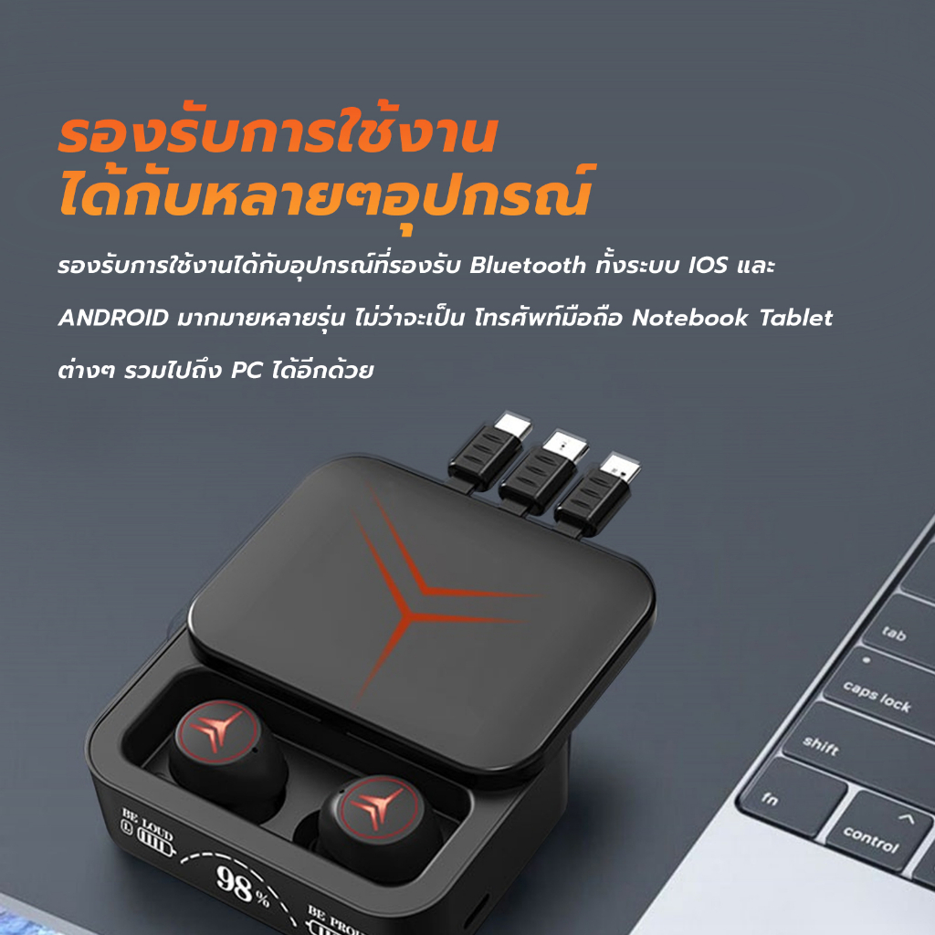 TWS M80 / M88plus หูฟังบลูทูธไร้สาย เสียงสเตอริโอ กล่องชาร์จไฟแบบฉุกเฉินพร้อมสายชาร์จในตัว เสียงดี