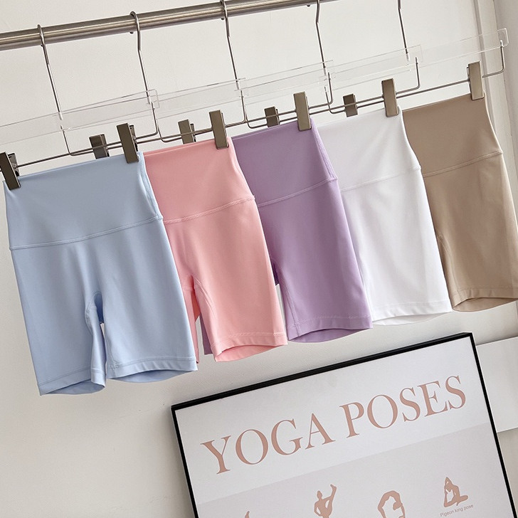 【YOGATRUTH】กางเกงขาสั้น เอวสูง สีนู้ด สําหรับเล่นโยคะ ฟิตเนส