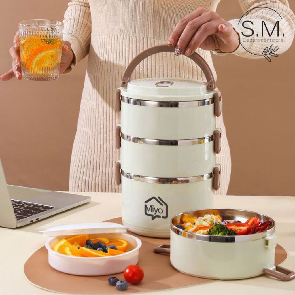 SM.ปิ่นโตสแตนเลสใส่อาหาร แบบแยกชั้น มีซิลิโคนกันหกได้ กล่องอาหาร 2/3/4ชั้น