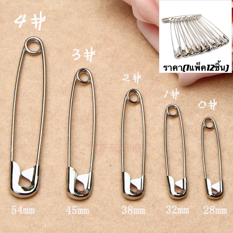 เข็มกลัดสแตนเลส สีเงิน เบอร์0- เบอร์4 เข็มกลัดพวง(เกรดดี)ราคา 1แพ็ค12ชิ้น