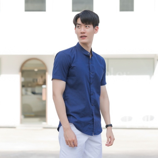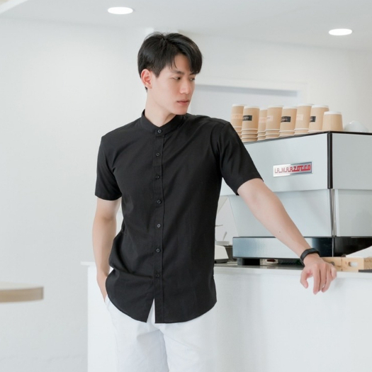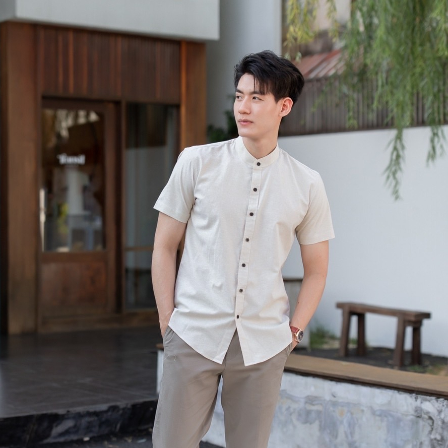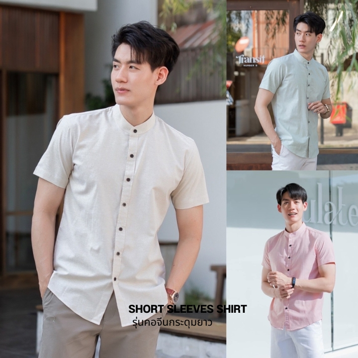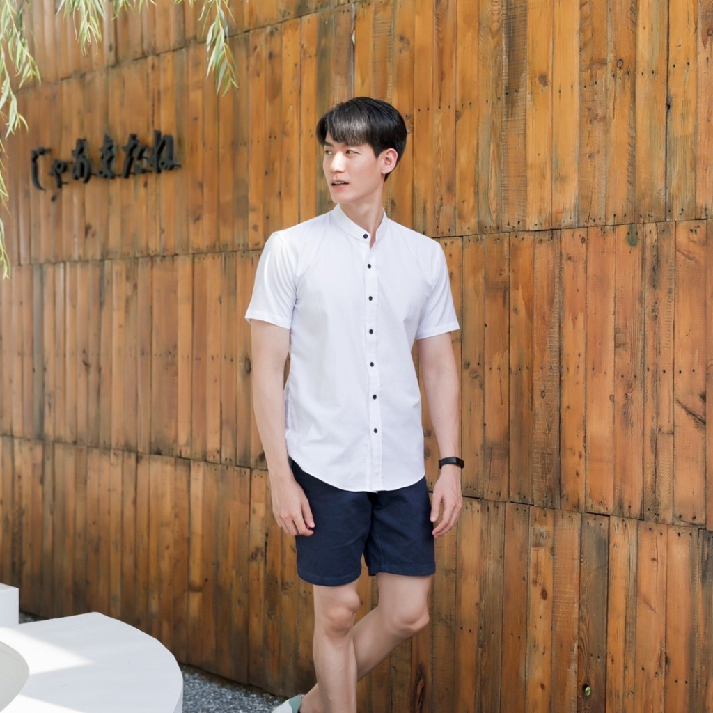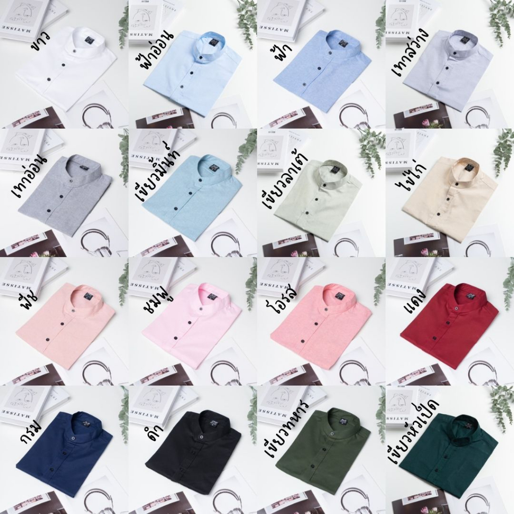 (16 สี) เสื้อเชิ้ตคอจีนแขนสั้น รุ่นกระดุมยาว ผ้า OXFORD (ไซต์ S-XXL) เสื้อผ้าผู้ชาย