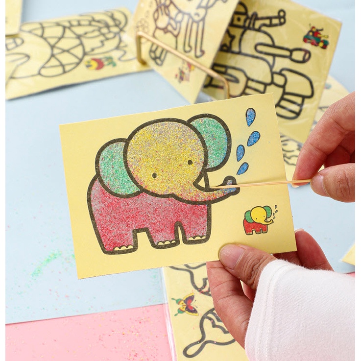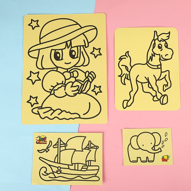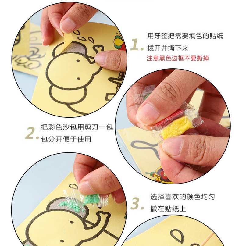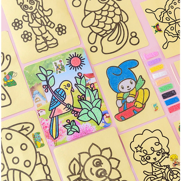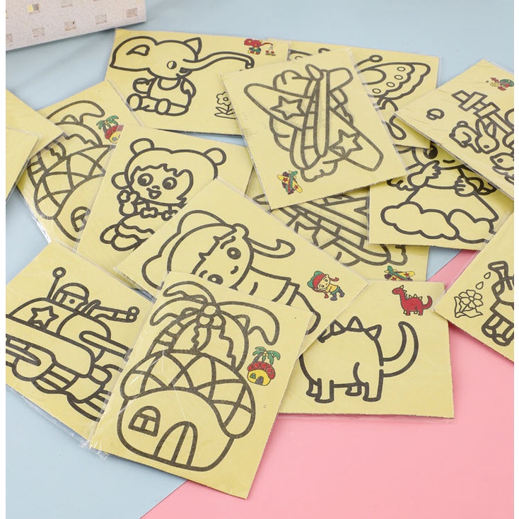 กระดาษกาว พร้อมสี ทรายระบายสีการ์ตูน [มี 4 ขนาด] วาดภาพ งานศิลปะ ทรายระบายสี เสริมทักษะ
