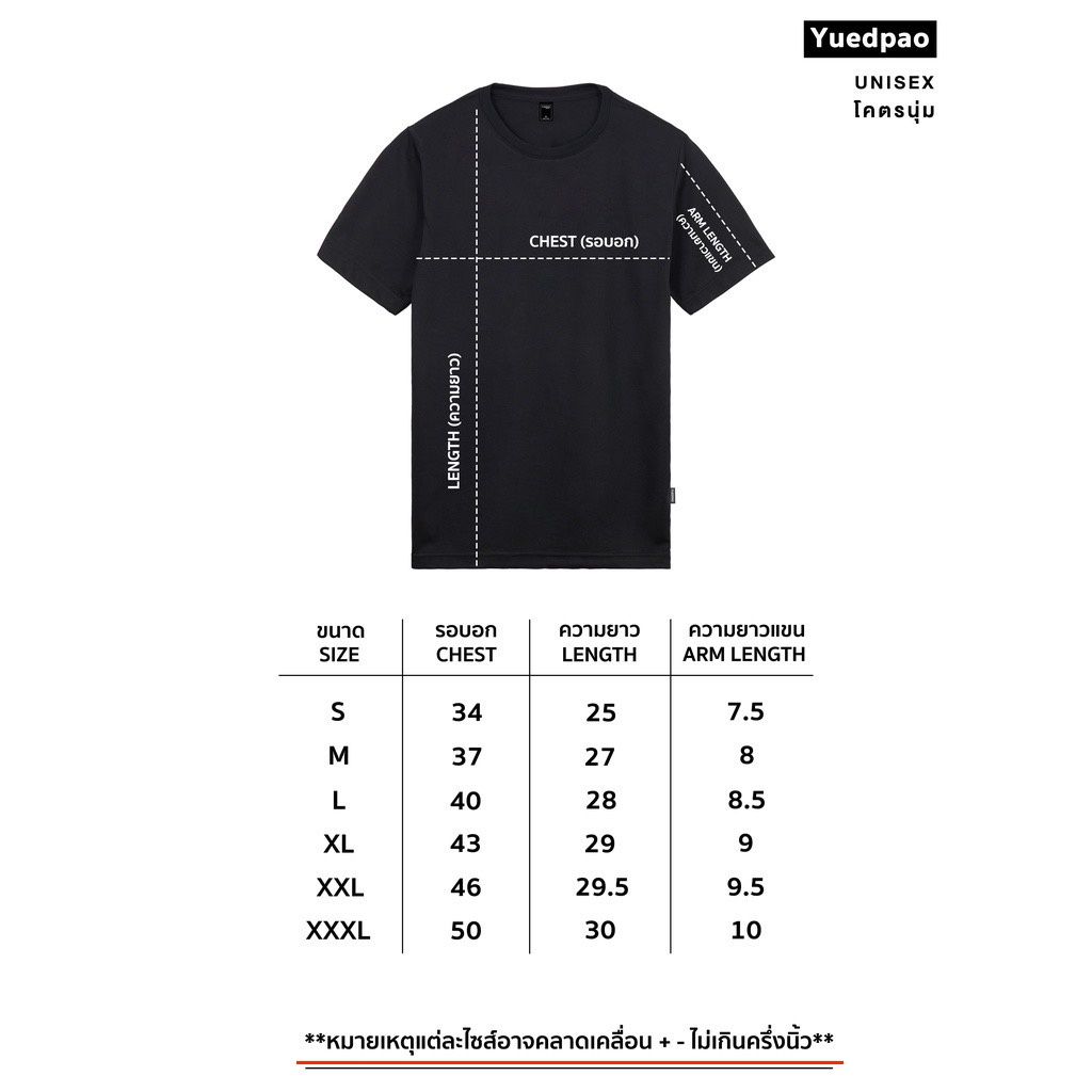 ... าย เพื่อยืดอายุการใช้งาน ควรซักโหมดถนอมผ้าหรือใช้ถุงถนอมผ้า Yuedpao - ไม่ย้วย รับประกันมากกว่า 2 ปี - ไม่หด ไม่ต้องเผื่อไซส์ - ไม่ต้องรีด ซักตากใส่ได้เลย เนี้ยบ - ไม่อมเหงื่อ เนื้อผ้าระบายอากาศดีเยี่ยม - Cotton ผสม No.34 ละเอียดเนื้อนุ่มใส่สบายมาก - คุณภาพระดับห้าง มีสาขาบนห้างชั้นนำ Our story เสื้อทุกตัวของ yuedpao ใช้ผ้าคอตตอน ที่ผสมกับ poly อย่างดี ทำให้เสื้ออยู่ทรงสวย นุ่มสบาย ย้วยและยืดยาก ที่สำคัญก็ยับยากเช่นกันทำให้ดูเนี๊ยบตลอดเวลา แตกต่างกับ ผ้าคอตตอน 100 % เป็นที่รู้กันอย่างดี ว่าย้วยและยืดง่ายมากขนาดที่ว่าซักรอบเดียว หดไปเป็นคืบเลยทีเดียววววววนะเธอ ***หมายเหตุ : แนะนำให้แยกซัก 1-2 ครั้งแรก เนื่องจากเสื้อสีเข้มอาจจะมีสีตกได้*** *** สินค้าที่ลง Flash sale ทุก Slot เป็นสินค้าใหม่ทุกตัว ทางร้านขออนุญาตไม่รับเปลี่ยน ไซส์ สี ทุกกรณี (ยกเว้นสินค้าที่ได้รับมีตำหนิ) เนื่องจากสินค้าที่ลงเป็นช่วงโปรโมชั่นและมีจำนวนจำกัด ต้องขออภัยในความไม่สะดวก ณ ที่นี่ “ Yuedpao ยังง๊ายย ก็ไม่ย้วย ” #เสื้อยืดเปล่า #Yuedpao #เสื้อยืดสีพื้น #เสื้อยืดคอกลม #เสื้อยืดโคตรนุ่ม #ยืดแต่ไม่ย้วย #ยับยากไม่ต้องรีด