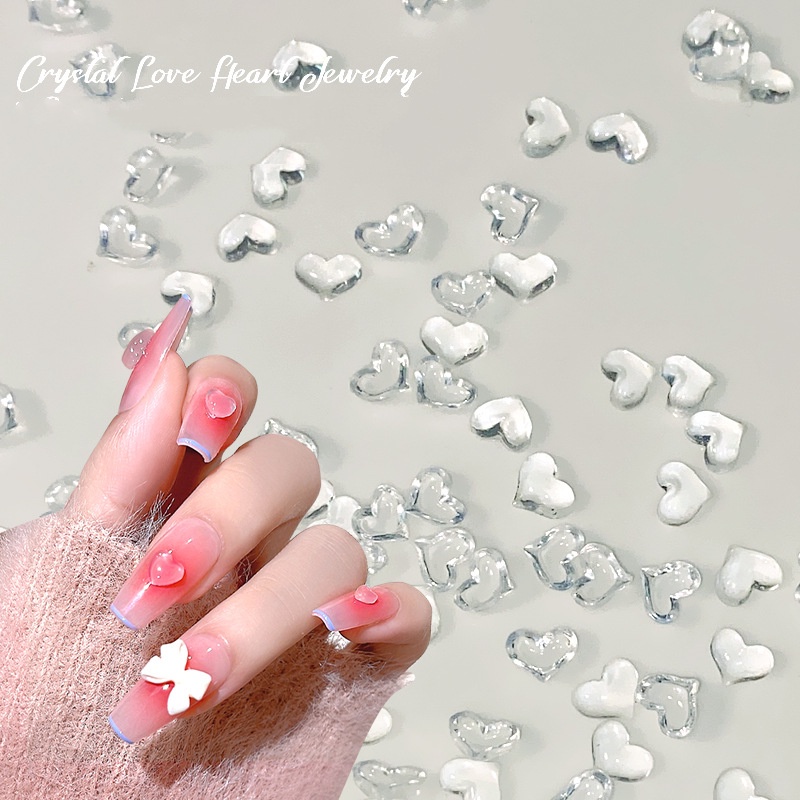 50 ชิ้น/กล่องเรซิ่นออโรร่า รูปหัวใจ ขนาดเล็ก สีสันสดใส สําหรับตกแต่งเล็บ