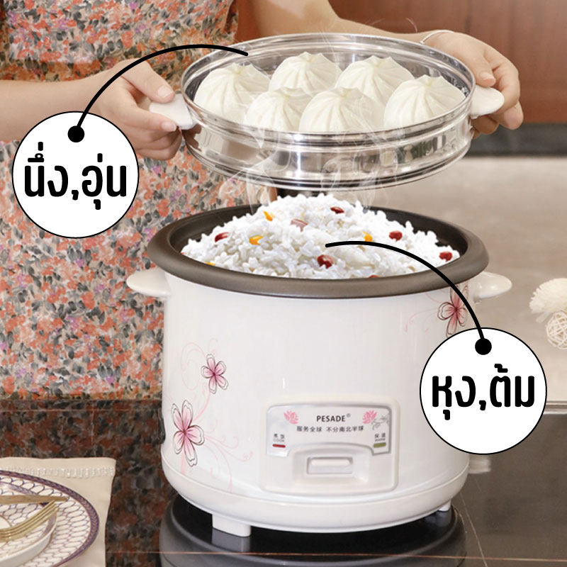 ** คุณสมบัติ ** - ความจุ: 0.6L สามารถทานได้ 1-2 คน - กำลังไฟฟ้า : 300W - แรงดันไฟฟ้า: 220V- 50Hz - วัสดุหม้อนอนสติ๊กฟู้ดเกรด อาหารไม่ติดก้นหม้อ - มีที่นึ่งสแตนเลส สำหรับนึ่งหรืออุ่นอาหาร - ใช้งานง่าย เพียงกดปุ่มสวิตซ์เดียว -------------------------------