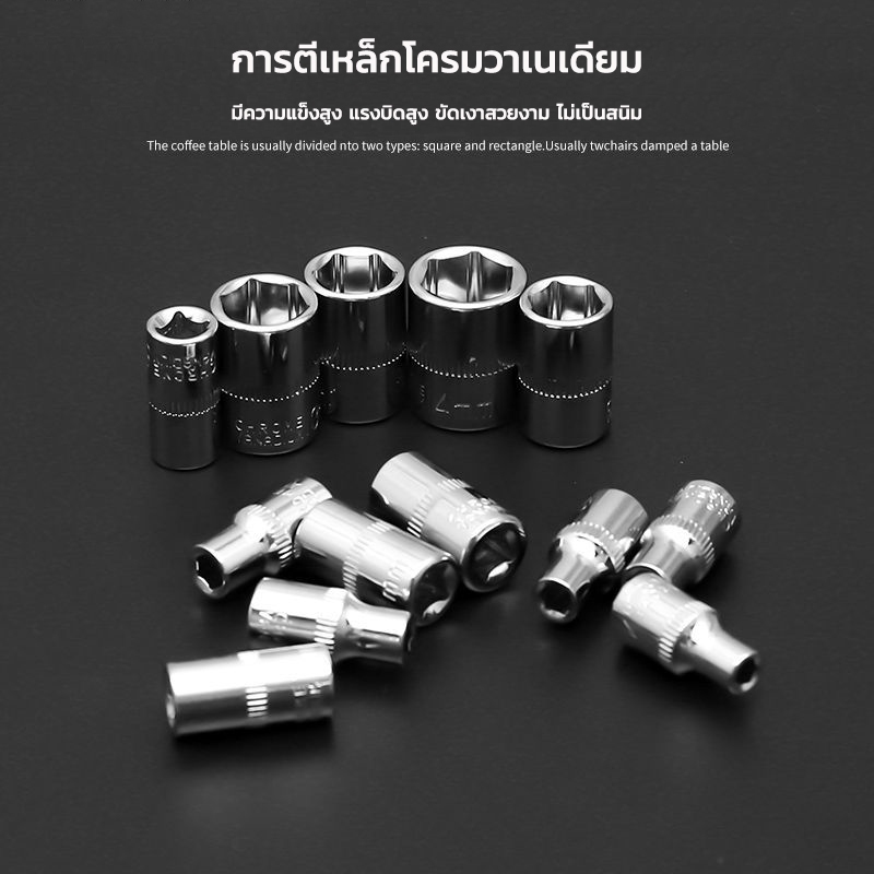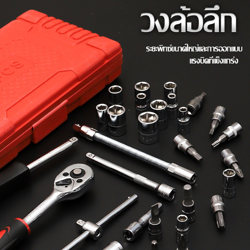... ทัดรัด พกพาสะดวก ในชุดประกอบด้วย 13 x 1/4in drive sockets: 4, 4.5, 5, 5.5, 6, 7, 8, 9, 10, 11, 12, 13 and 14mm 21 x 1/4in drive bit sockets: 3 x Flared: 4mm, 5.5mm, 7mm. 3 x Phillips: PH1, PH2, PH3. 3 x Pozi: PZ1, PZ2, PZ3. 6 x Hex: HW3, HW4, HW5, HW6, HW7, HW8. 6 x Torx: T10, T15, T20, T25, T30 and T40. 3 x hex key wrenches: 1.5, 2.0 and 2.5mm. 1 x 1/4in drive universal joint. 2 x 1/4in drive extension bars: 2in and 4in. 1 x 1/4in drive flexible extension: 6in. 1 x 1/4in de-sliding T bar. 1 x 1/4in drive quick ratchet handle. 1 x handle. 1 x 1/4in drive spinner handle: 6in. 1 x 1/4in drive bit adaptor. 1 x blow case. 📦สินค้าเข้าใหม่ของแท้ 100% ร้านนำเข้าโดยตรง ไม่ผ่านคนกลาง พร้อมส่ง!!! 🙋รับประกันคุณภาพทุก Order เช็คสินค้าก่อนส่งจ้า🛒 🚚การจัดส่งสินค้า ทางร้านจัดส่งผ่าน Shopee Fast มีบริการเก็บเงินปลายทางทั่วประเทศ ลูกค้าจะได้รับสินค้าประมาณ 1 วัน