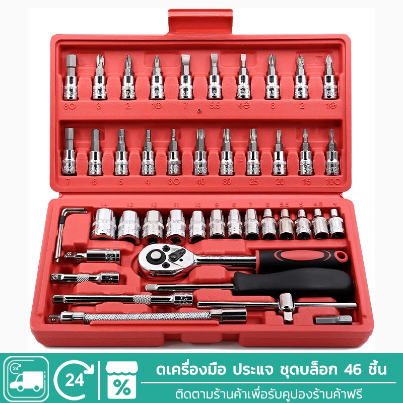 ชุดบล็อก ชุดบล็อกประแจ ชุดประแจ ชุดเครื่องมือ ประแจ ชุดบล็อก 46 ชิ้น Socket เครื่องมือช่าง