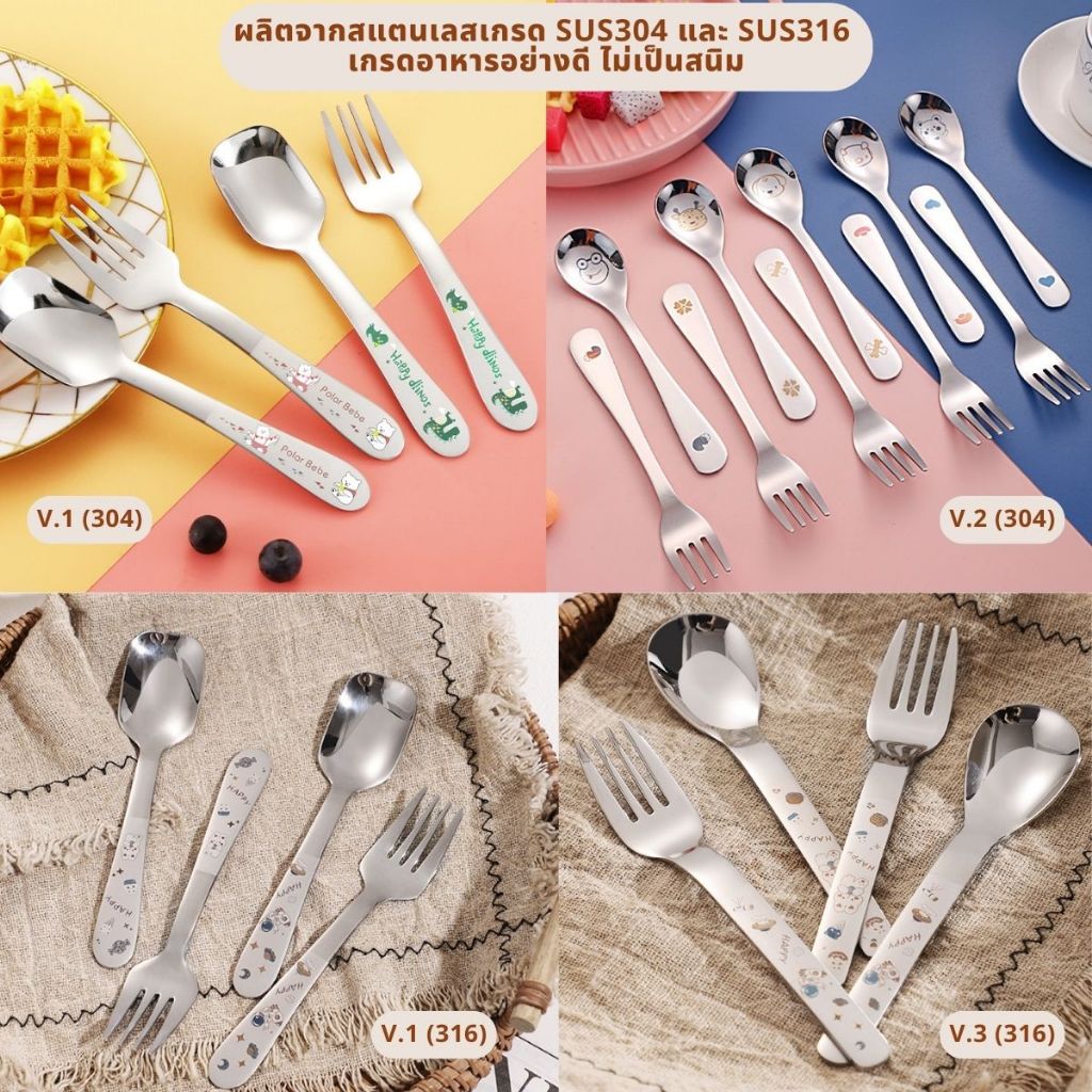 ชุดช้อนส้อมสแตนเลสด้ามยาวสำหรับเด็ก สแตนเลสเกรด 304 และ 316 คุณภาพดี เกรดส่งออก มี 3 รูปแบบ - แบบปลายช้อนเหลี่ยม (V.1) ขนาด : 3.5x15.7 cm (ช้อน) 2.8 x15.5 cm (ส้อม) - แบบปลายช้อนกลม ขอบช้อนด้านหนึ่งโค้งเล็กน้อย (V.2) ขนาด : 3.3x15.5 cm (ช้อน) 2.4x15.5 cm (ส้อม) - แบบปลายช้อนกลม (V.3) ขนาด