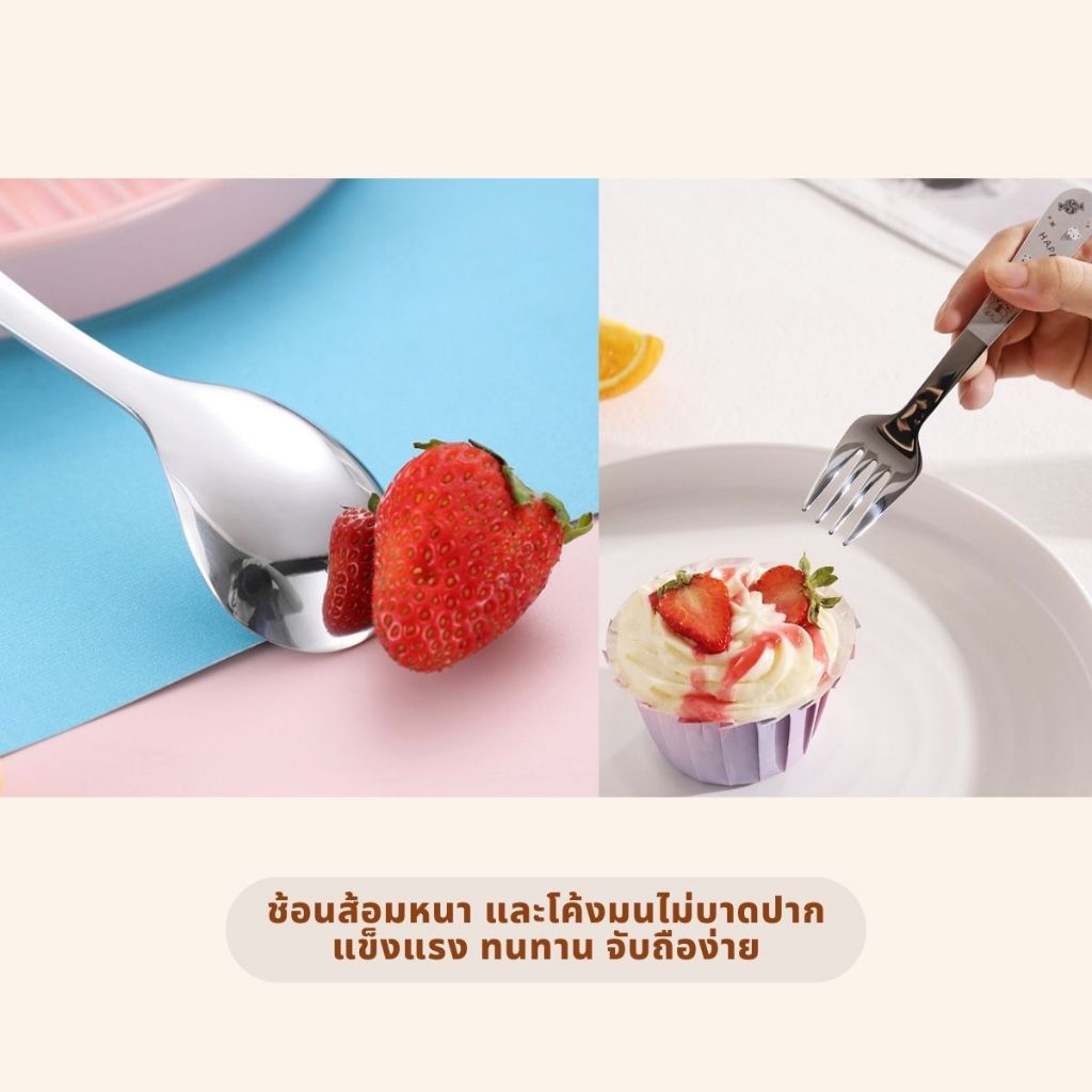 ... : 2.7x16.2 cm (ช้อน) 3.7 x16.1.5 cm (ส้อม) เหมาะสำหรับเด็ก 2 ขวบขึ้นไป V.1 (304) มีทั้งหมด 8 ลาย : ไม่มีลาย / รถ / หมีขั้วโลก / กระต่าย / ไดโนเสาร์ / ยูนิคอร์น / แพนด้า / หมีhappy V.1 (316) มีทั้งหมด 3 ลาย : ไม่มีลาย / กระต่าย / อวกาศ V.2 (304) มีทั้งหมด 8 ลาย : ไม่มีลาย / กบ / กวาง / หมู / แมว / สุนัข / กระต่าย / รถ / หมีขั้วโลก / ไดโนเสาร์ V.3 (316) มีทั้งหมด 3 ลาย : ไม่มีลาย / กระต่าย / อวกาศ ชุดช้อนส้อมสแตนเลสเด็ก เกรด 304 และ เกรด 316 แบบยาว ช้อนส้อมฝึกทานอาหารเด็ก ช้อนส้อมเด็กโต มีกล่องเก็บแยกขาย คุณภาพดี ลวดลายน่ารัก มีหลากหลายลายให้เลือก - ผลิตจากสแตนเลสเกรด SUS304 และ SUS316 เกรดอาหารอย่างดี ไม่เป็นสนิม - ดีไซน์น่ารัก มีทั้งแบบไม่มีลายและแบบพิมพ์ลวดลายการ์ตูนน่ารัก สีสันสวยงาม ดึงดูดใจเด็กๆให้อยากรับประทานอาหารเอง - จับถือง่ายกว่าช้อนรูปทรงทั่วไป เนื่องจากน้องที่ยังเล็กกล้ามเนื้อมัดเล็กยังทำงานได้ไม่ดีนัก - ช้อนส้อมหนา และโค้งมนไม่บาดปาก แข็งแรง ทนทาน - ปลอดภัย ปราศจากสาร BPA - เข้าเครื่องล้างจานและเครื่องนึ่งขวดนมได้ วิธีการใช้งาน : ใช้สำหรับตักอาหารอาหาร การทำความสะอาด : ก่อนใช้งานควรล้างให้สะอาด หลังใช้งาน ให้ขจัดเศษอาหารออกให้หมด ล้างด้วยฟองน้ำ แล้วเช็ดให้แห้ง - ล้างทำความสะอาดด้วยน้ำยาล้างจานหรือน้ำยาล้างขวดนมเด็ก - สามารถทำความสะอาดได้ในเครื่องล้างจาน (ชั้นวางด้านบนเท่านั้น) เครื่องอบฆ่าเชื่อ เครื่องนึ่งขวดนมได้ ข้อควรระวัง : เก็บให้ห่างความร้อนและไฟ ห้ามขัดด้วยแปรงแข็งหรือผงขัดเงา เพราะอาจจะทำให้พื้นผิวเป็นรอยได้ **** กล่องเก็บช้อนส้อม สำหรับใส่ช้อนส้อม V.1 และ V.2 เท่านั้น ไม่สามารถใช้กับช้อนส้อมรุ่น V.3 ได้****
